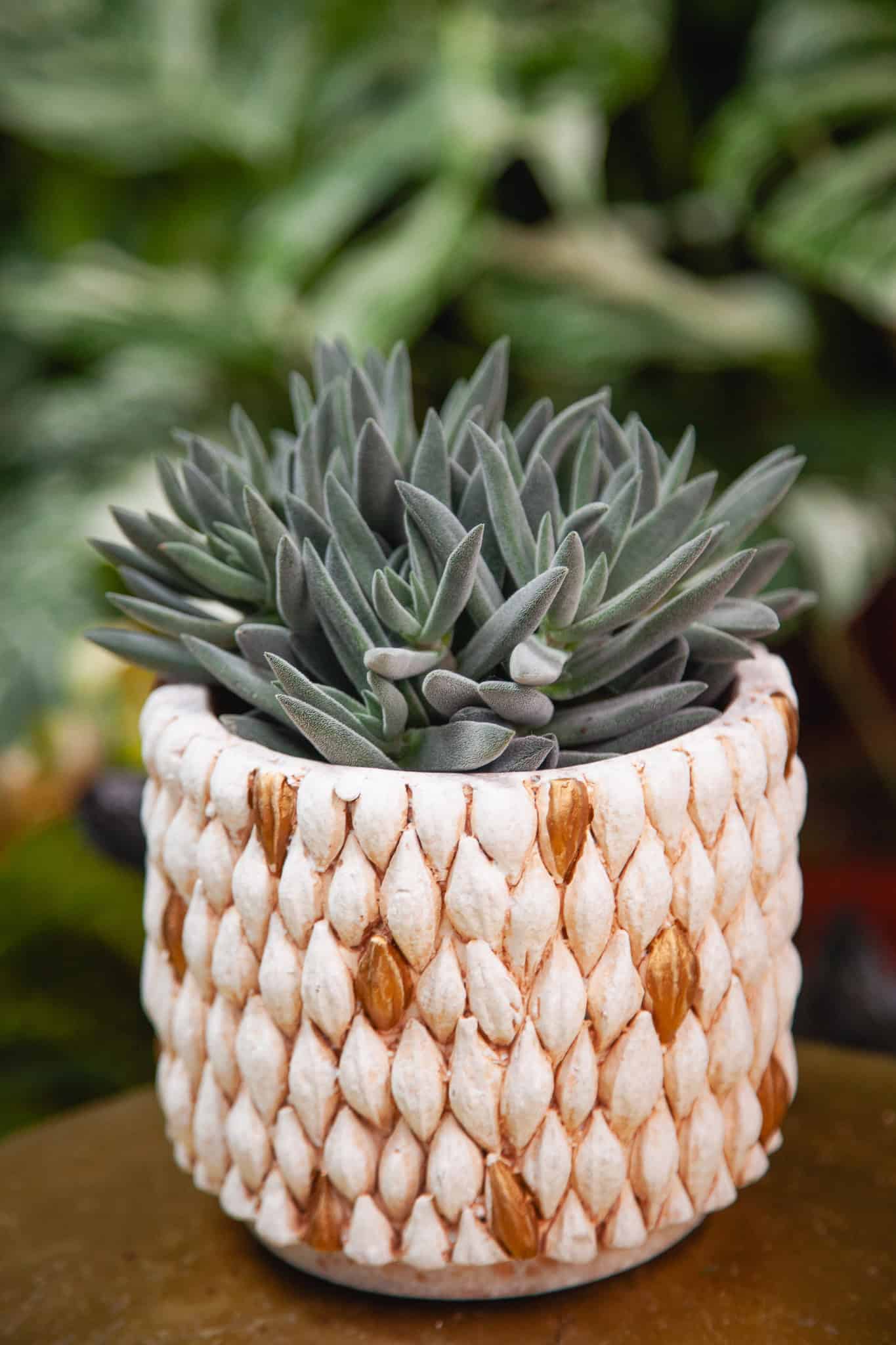 Widoczna na zdjęciu roślina: Crassula Tarantula ma wysokość około 15 cm. Jej doniczka ma 10 cm średnicy oraz 10 cm wysokości.