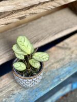 Widoczna na zdjęciu roślina: Ctenanthe Amagris ma wysokość około 10 cm. Jej doniczka ma 6 cm średnicy oraz 5 cm wysokości.
