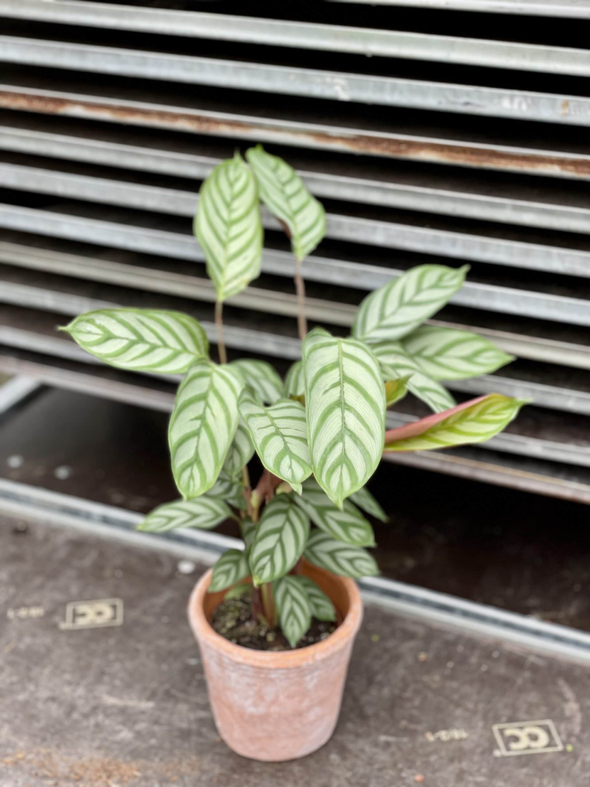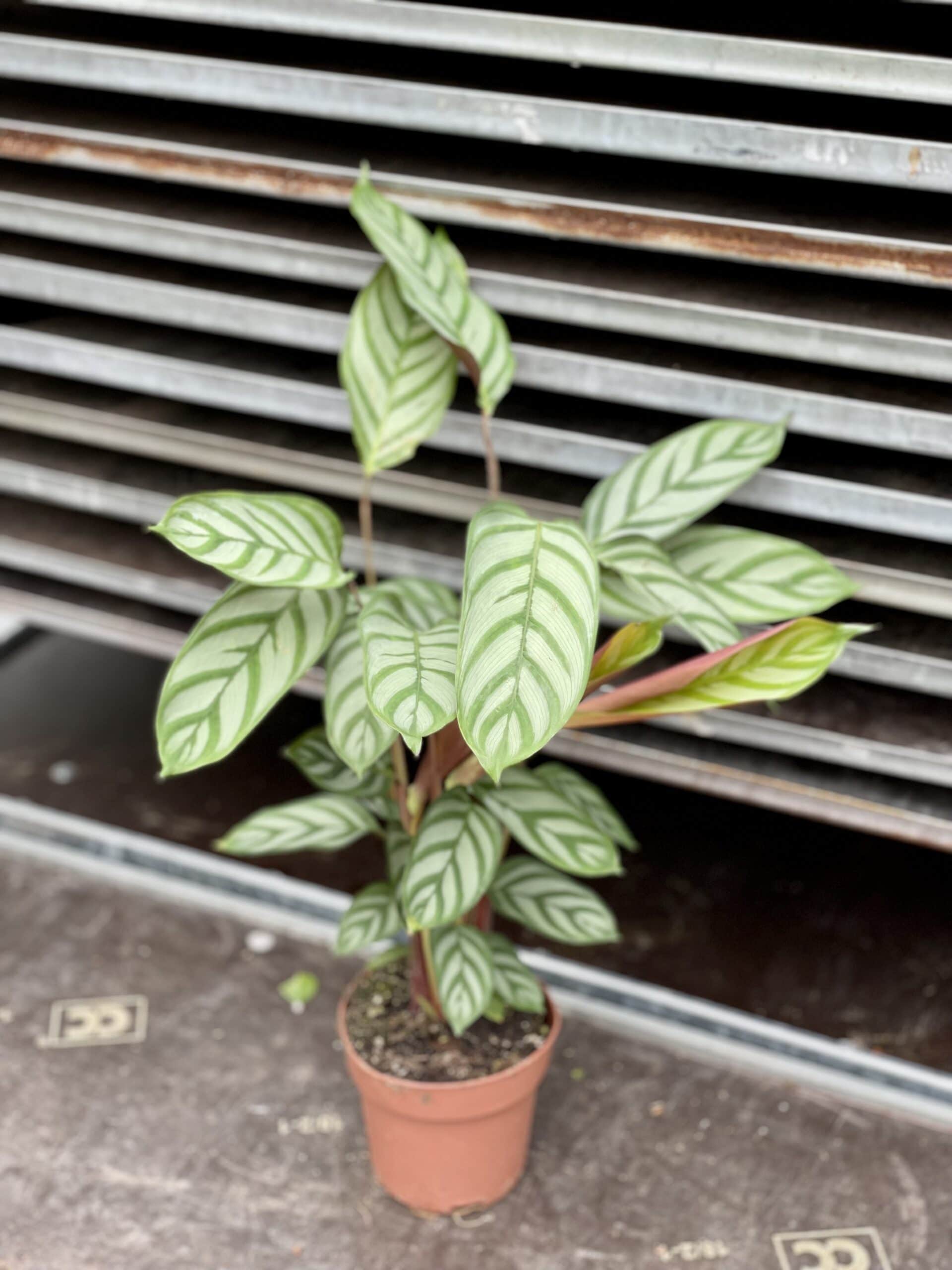 Widoczna na zdjęciu roślina: Ctenanthe Compactstar ma wysokość około 50 cm. Jej doniczka ma 13 cm średnicy oraz 12 cm wysokości.