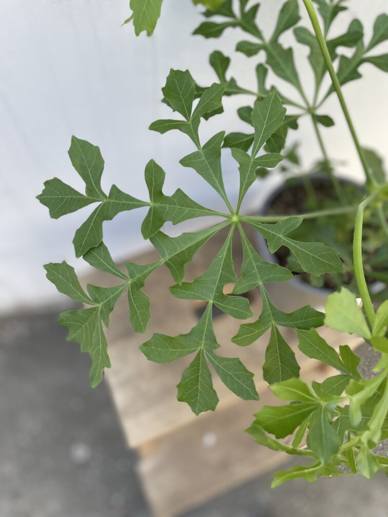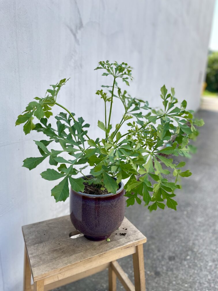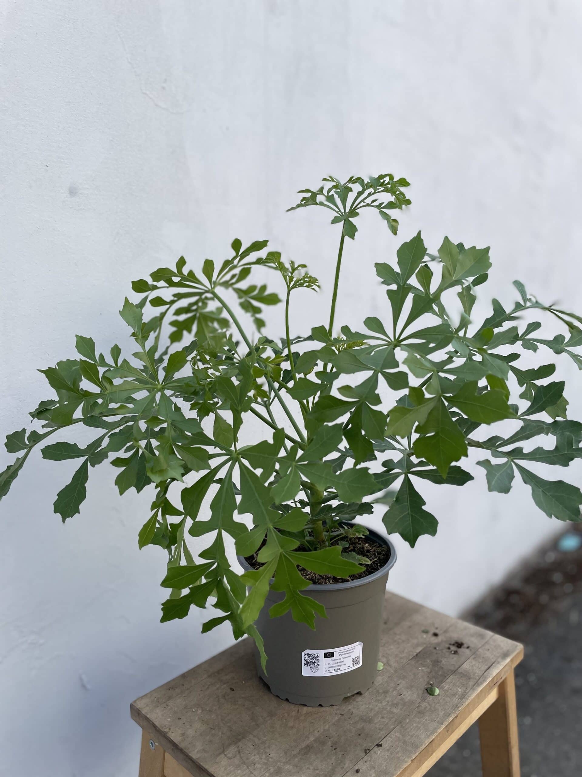 Cussonia, zwana „dzikim selerem”, to egzotyczne drzewko o rozłożystych, palczastych liściach przypominających parasol. Jego nietypowy wygląd, przypominający skrzyżowanie palmy z bonsai, czyni go oryginalnym elementem kolekcji roślin tropikalnych.