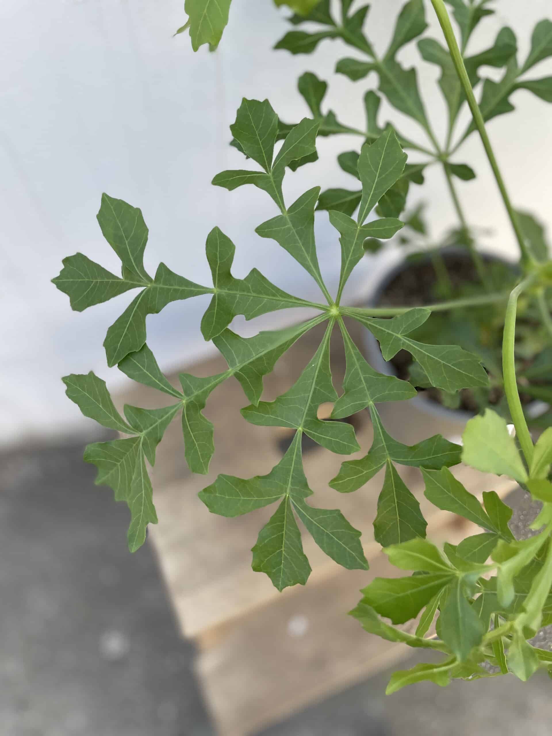 Widoczna na zdjęciu roślina: Cussonia cussonic ma wysokość około 50 cm. Jej doniczka ma 17 cm średnicy oraz 17 cm wysokości.