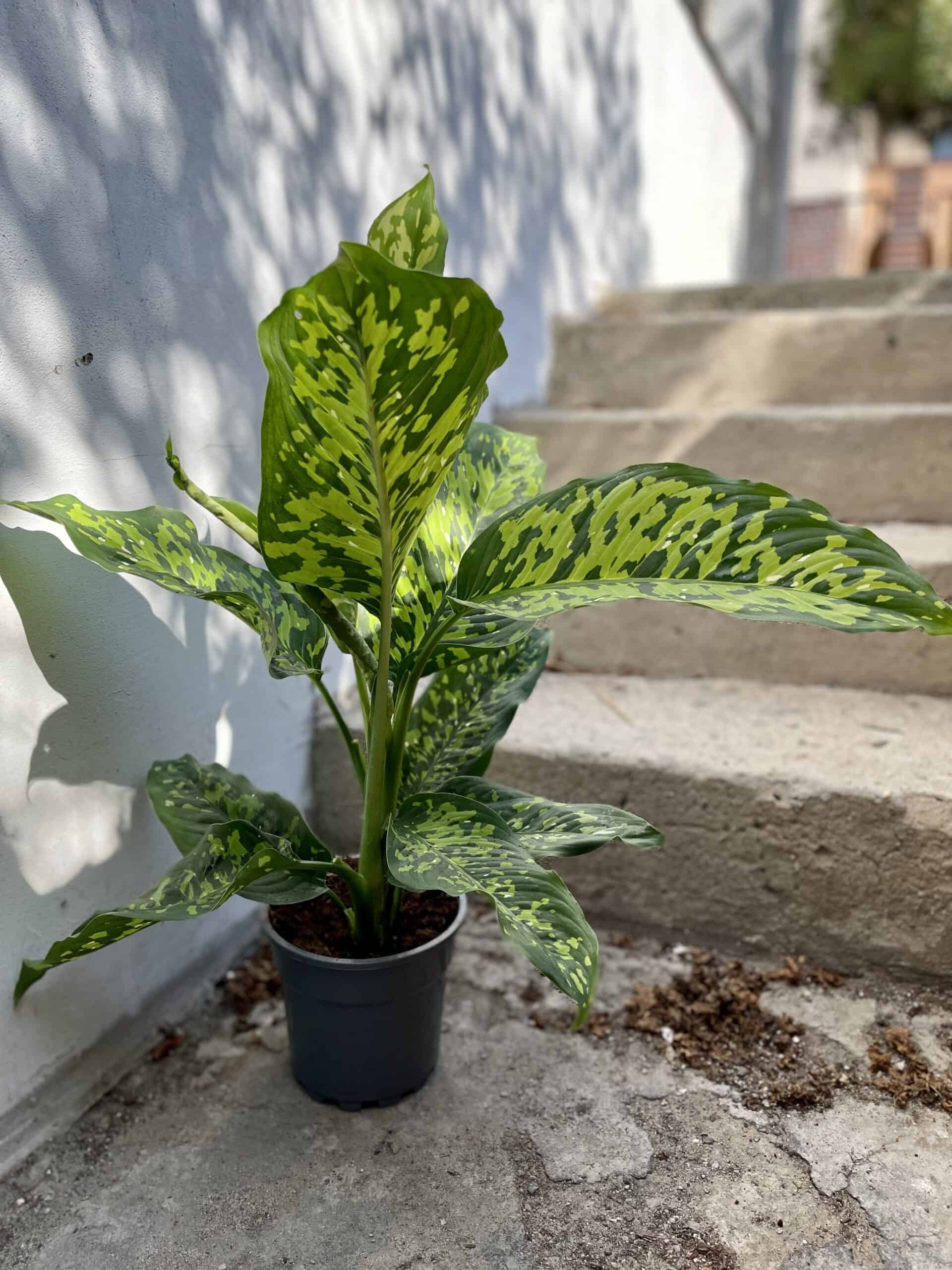 Co zrobić po zakupie?: Zalecamy przesadzenie diefenbachii do podłoża z dodatkiem perlitu, piasku lub tzw. bigosu, czyli podłoża odpowiedniego do roślin z rodziny obrazkowatych.