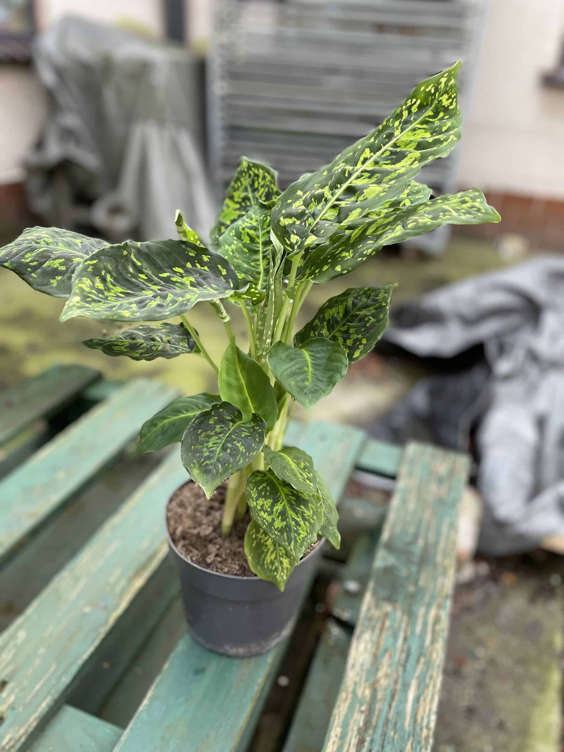 Wyjątkowo dekoracyjna odmiana dieffenbachii, której liście zachwycają ciemnozielonym odcieniem i kontrastującymi, neonowymi plamkami. Na uwagę zasługuje również wyrazisty, jasny nerw przechodzący wzdłuż blaszki.