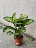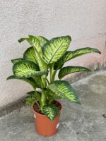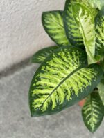 Pielęgnacja: Należy ją regularnie zraszać. Podlewamy, gdy wierzchnia warstwa podłoża zupełnie przeschnie. Dieffenbachia nie znosi przelania, lubi natomiast odstaną przegotowaną wodę. Zimą podlewamy wyjątkowo oszczędnie. Wrażliwa na przelanie i chłód – może reagować żółknięciem liści lub brązowymi plamami