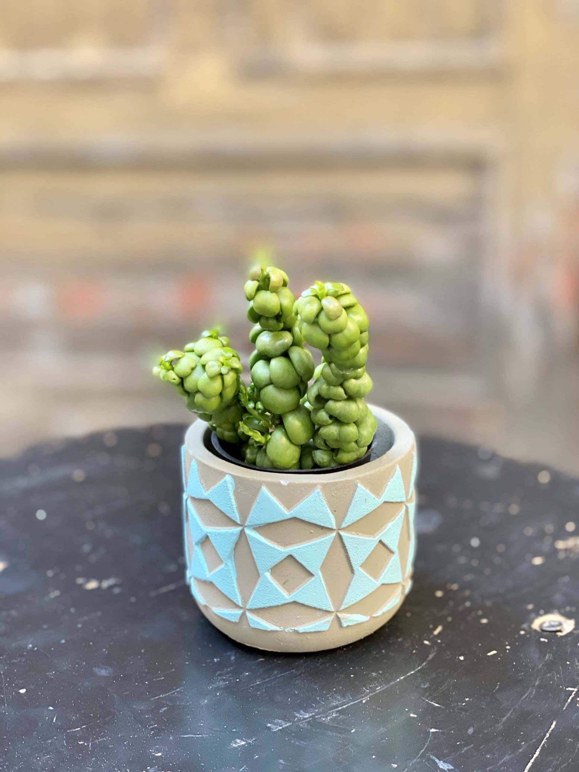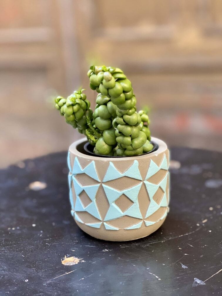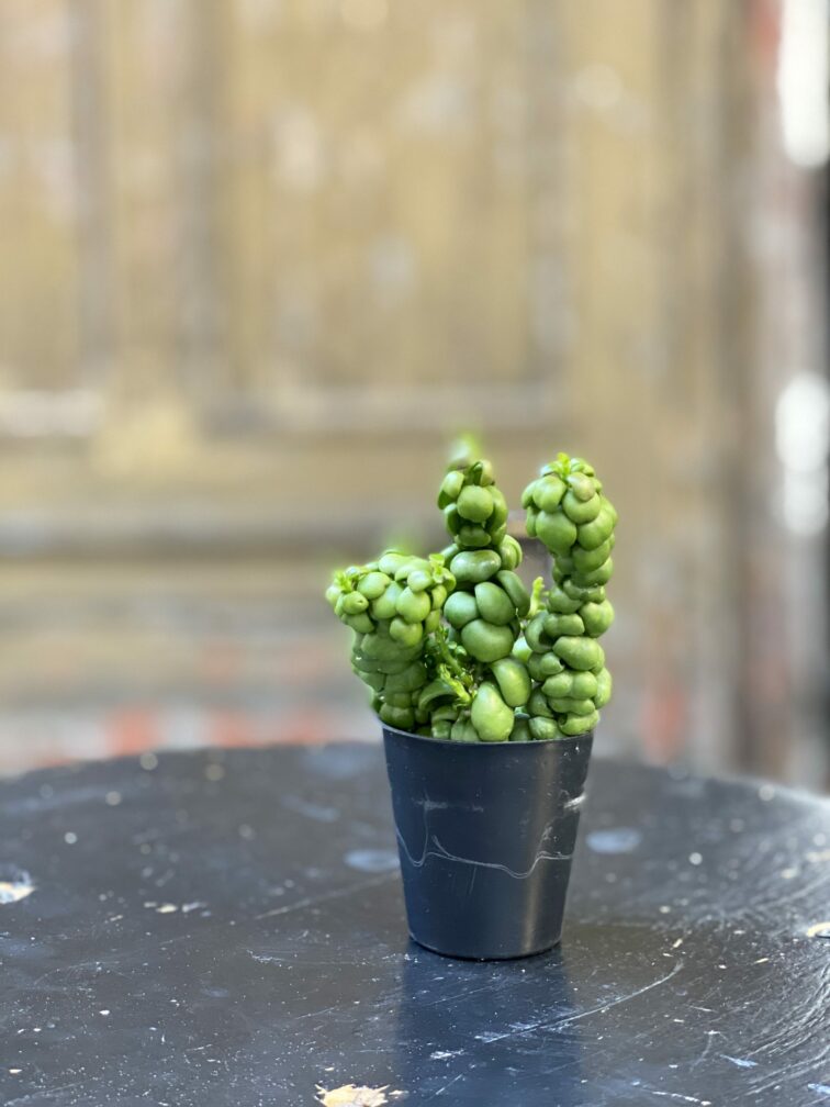 Widoczna na zdjęciu roślina: Dischidia Pangolin Kisses ma wysokość około 10 cm. Jej doniczka ma 5 cm średnicy oraz 5 cm wysokości.