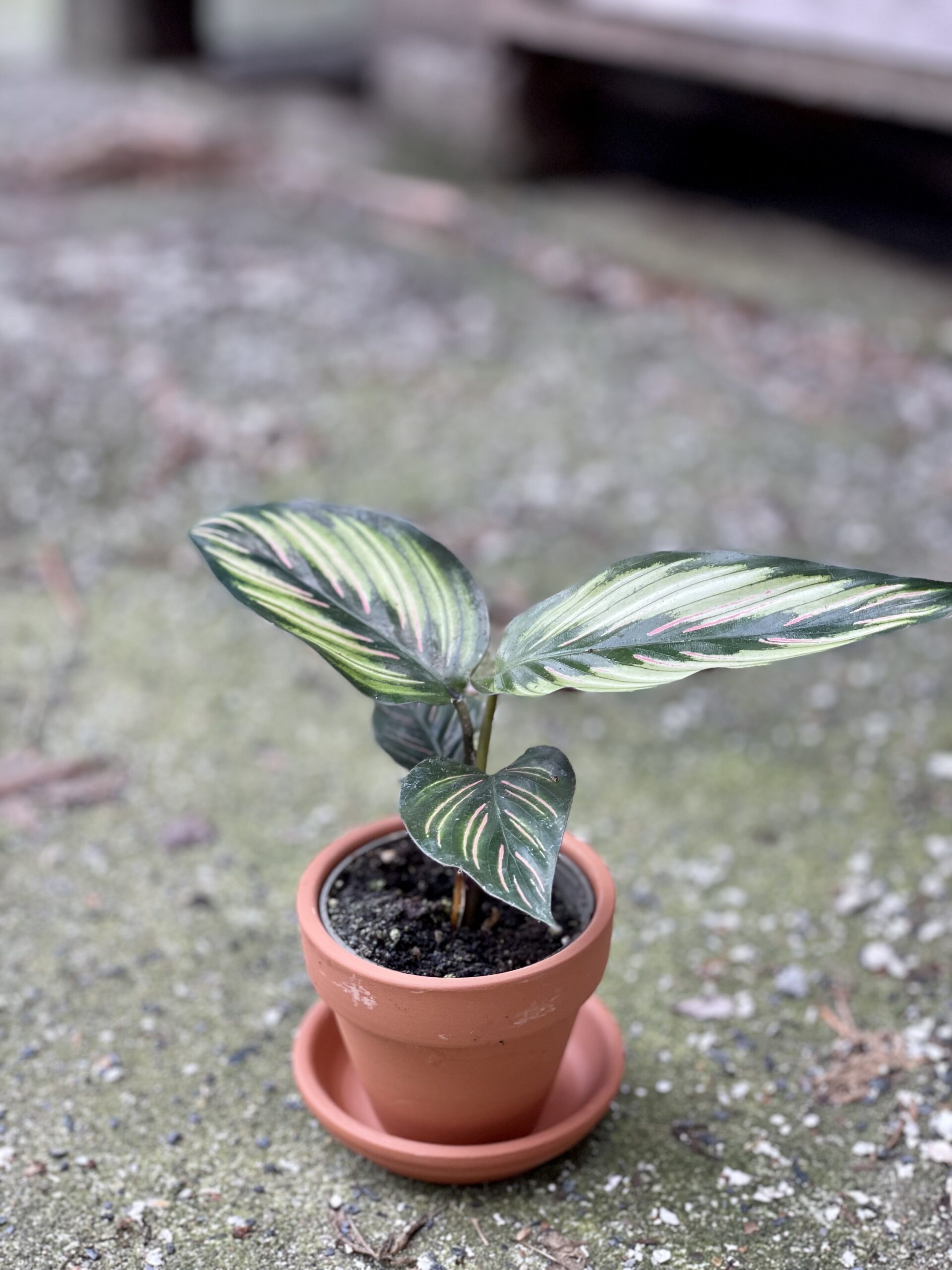 Na jednym ze zdjęć osłonka prezentowana jest w zestawie z rosliną: Calathea Beauty Star (Kalatea)NIEDOSTĘPNY