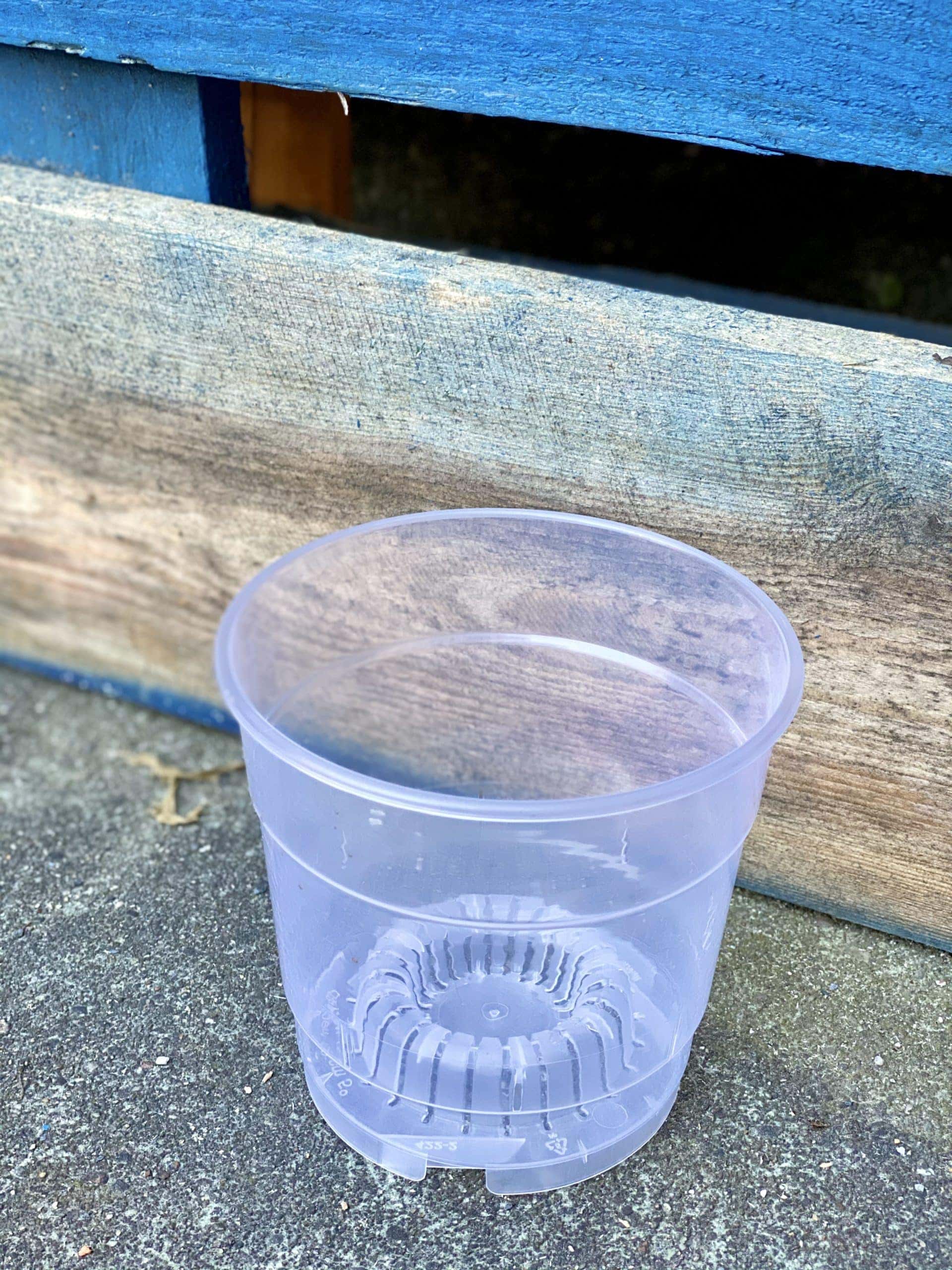 Widoczna na zdjęciu Doniczka plastikowa ma 10 cm średnicy oraz 11 cm wysokości.