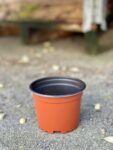 Widoczna na zdjęciu Doniczka plastikowa ma 10 cm średnicy oraz 8 cm wysokości.