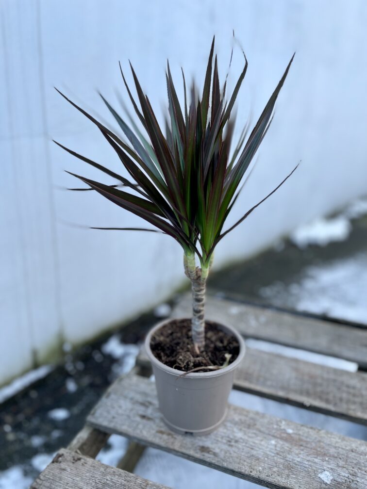 Widoczna na zdjęciu roślina: Dracaena marginata Magenta ma wysokość około 40 cm. Jej doniczka ma 12 cm średnicy oraz 10 cm wysokości.