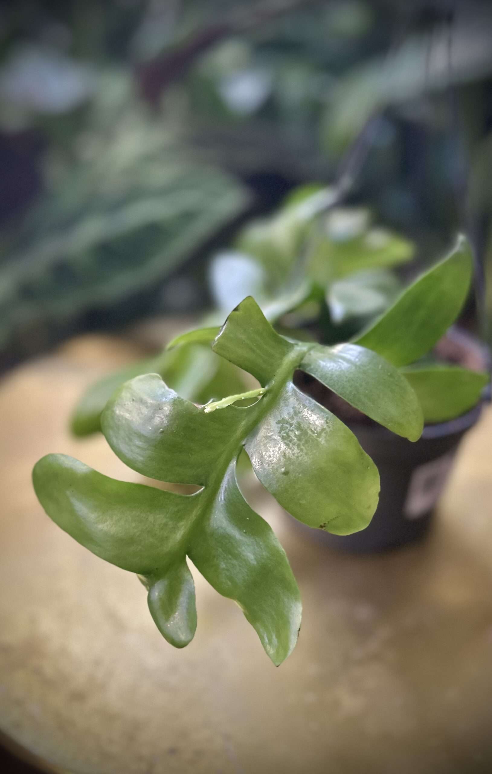Epiphyllum chrysocardium – choć nie wygląda, jest to kaktus. Dżunglowy i epifityczny. W naturze porasta korony tropikalnych drzew, dlatego warto zapewnić mu wysoką wilgotność powietrza. Będzie idealnych wyborem do makramy.