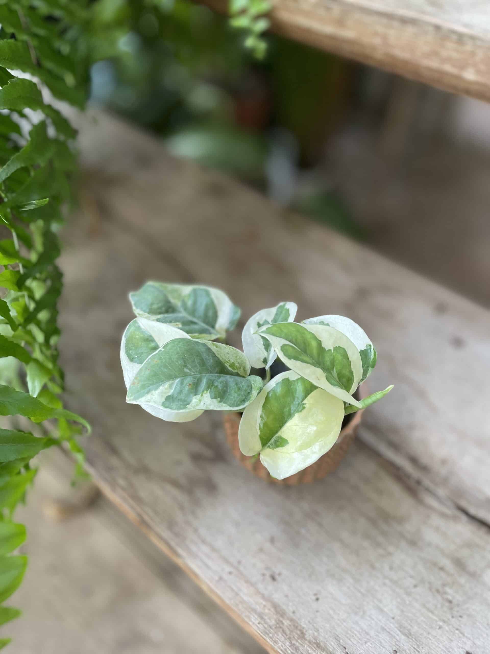Cechą charakterystyczną i wielkim atutem są dość drobne, sercowate liście z dużymi, plamiastymi znaczeniami w kolorze białym i kremowym. Roślina niekłopotliwa i wyjątkowo oryginalnie “umaszczona”, co sprawia że idealnie nadaje się na prezent.