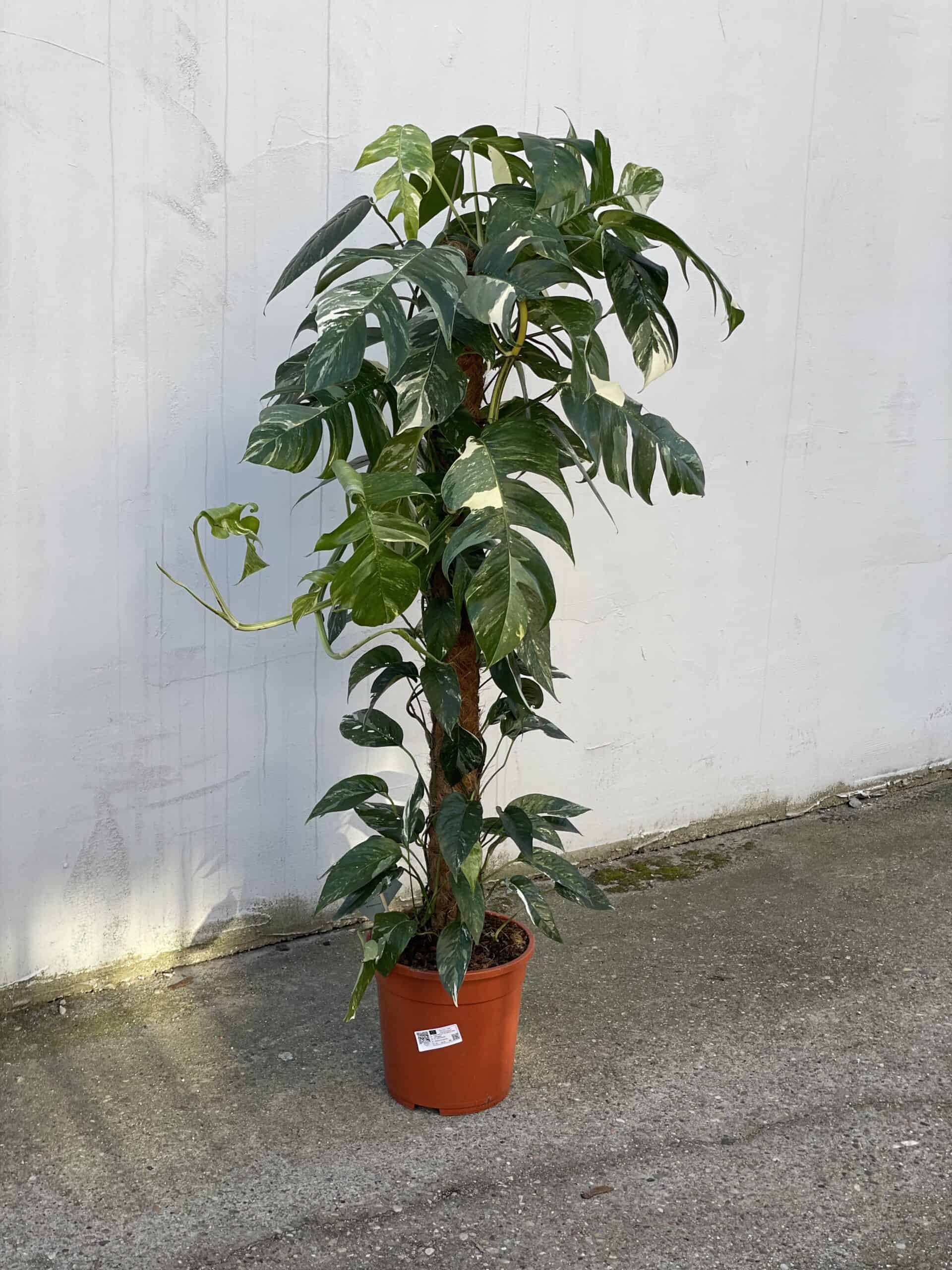 Epipremnum pinnatum albo variegata to przepiękne, kolekcjonerskie pnącza o białej wariegacji. Prowadzone po wilgotnej podporze szybko zacznie wypuszczać duże liście, przypominające powcinane liście Monstery variegata.