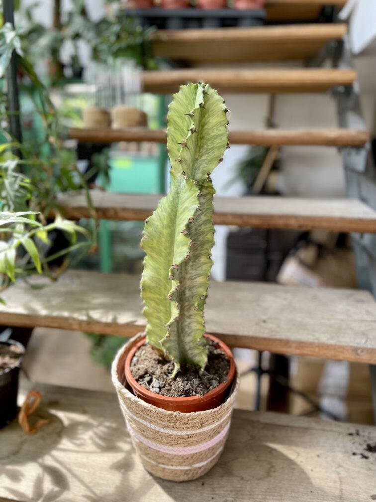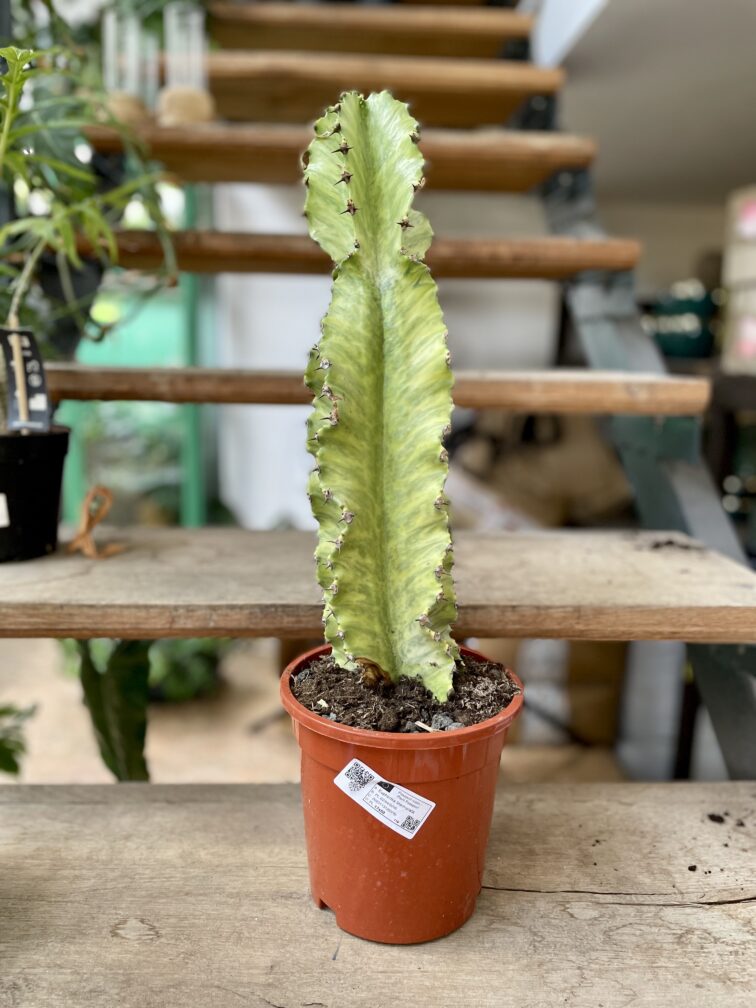 Widoczna na zdjęciu roślina: Euphorbia marmorata ma wysokość około 45 cm. Jej doniczka ma 17 cm średnicy oraz 16 cm wysokości.