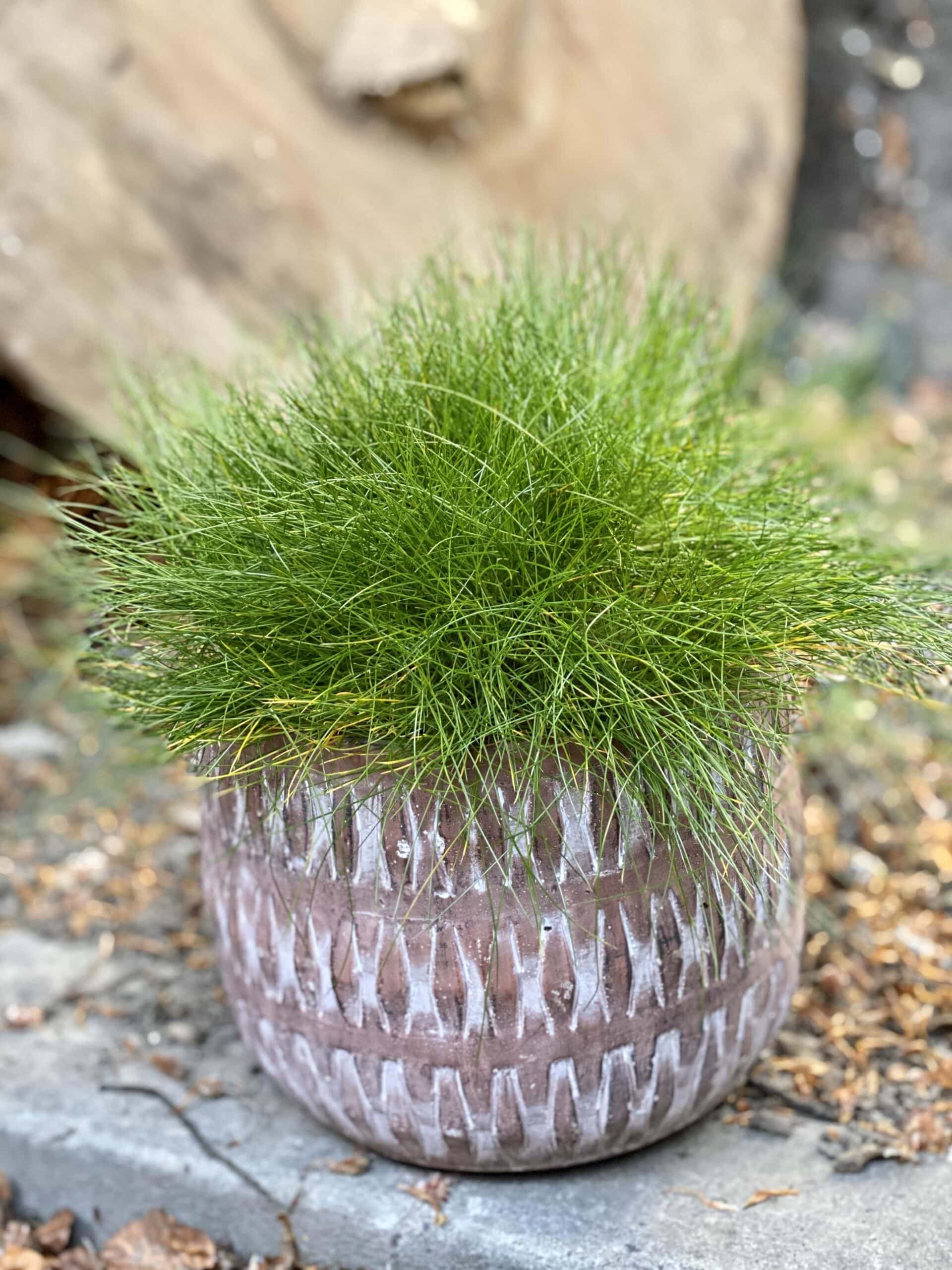 Widoczna na zdjęciu roślina: Festuca Glauca Amigreen ma wysokość około 35 cm. Jej doniczka ma 17 cm średnicy oraz 17 cm wysokości.