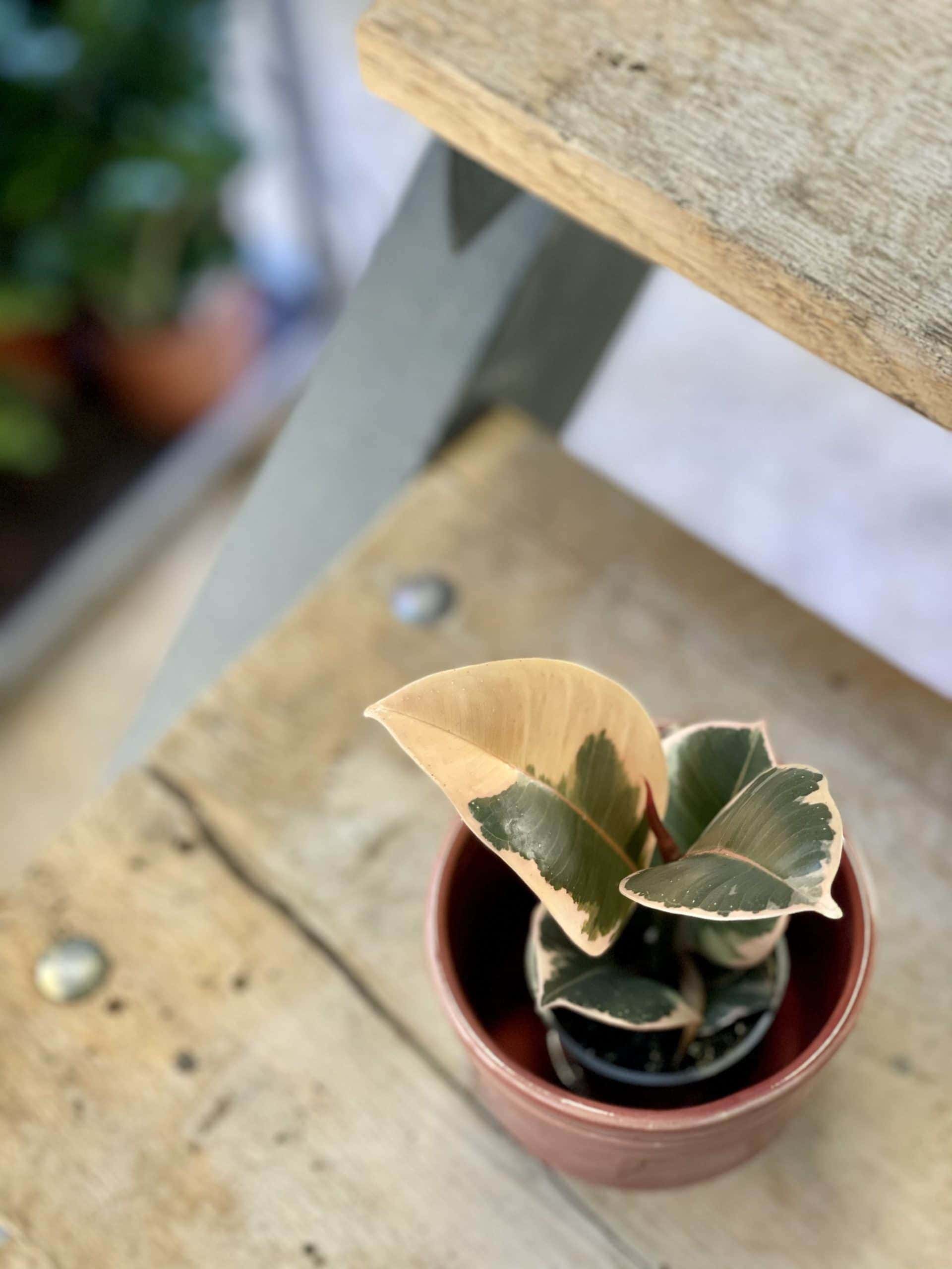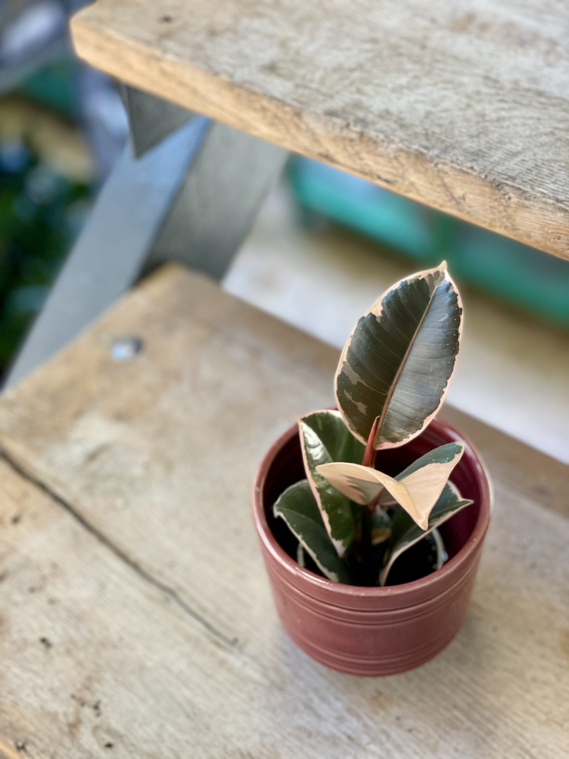 Malownicza odmiana Fikusa. Rośnie wolno, ale niezawodnie i jest dość prosty w pielęgnacji. Młode listki oblane są „czerwonym rumieńcem”, który znika gdy maluchy „wydorośleją”.