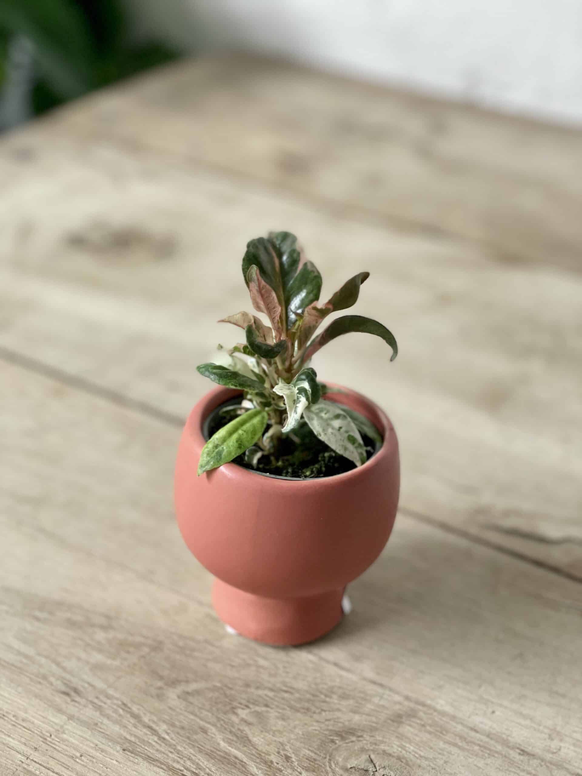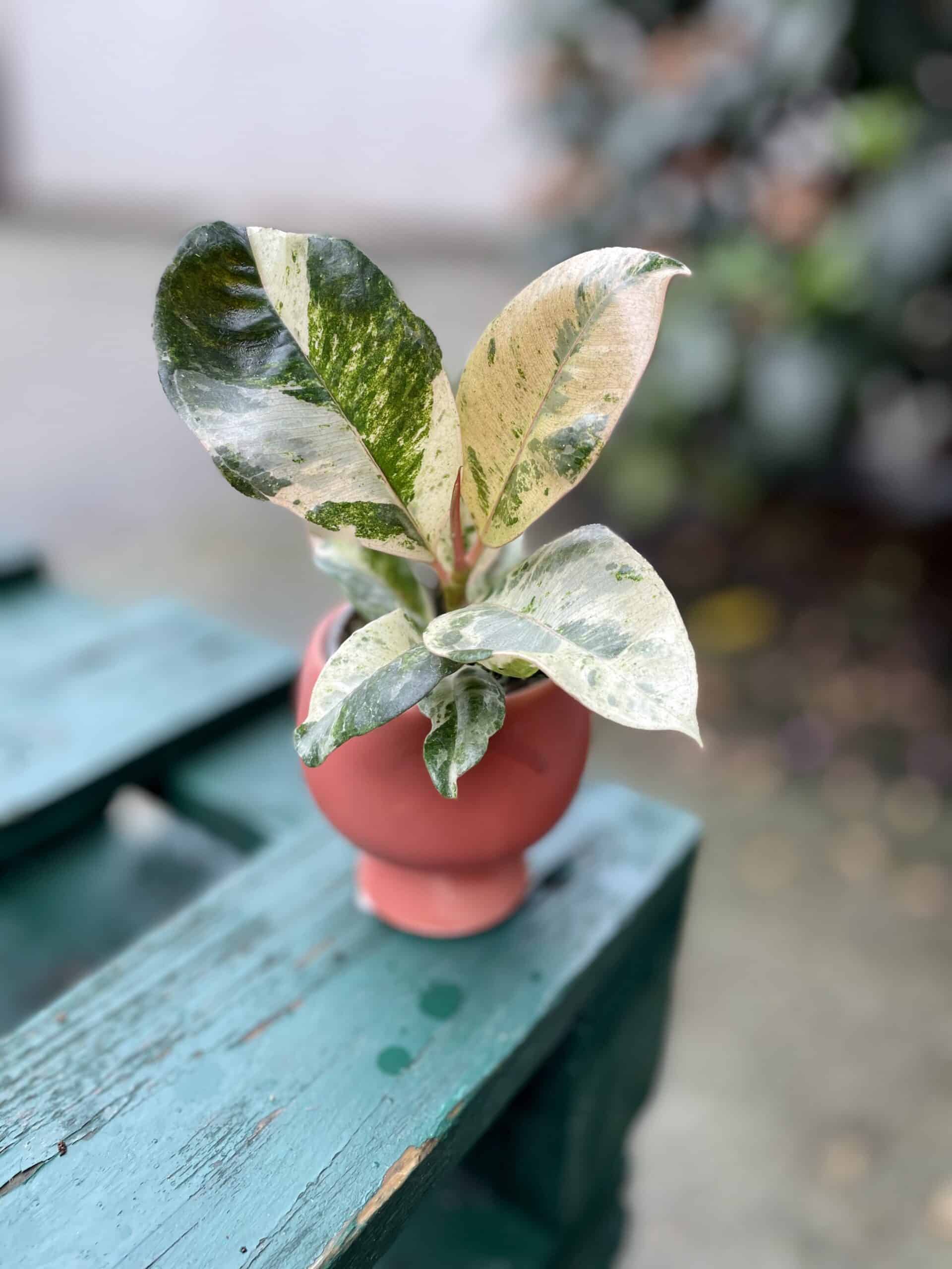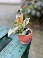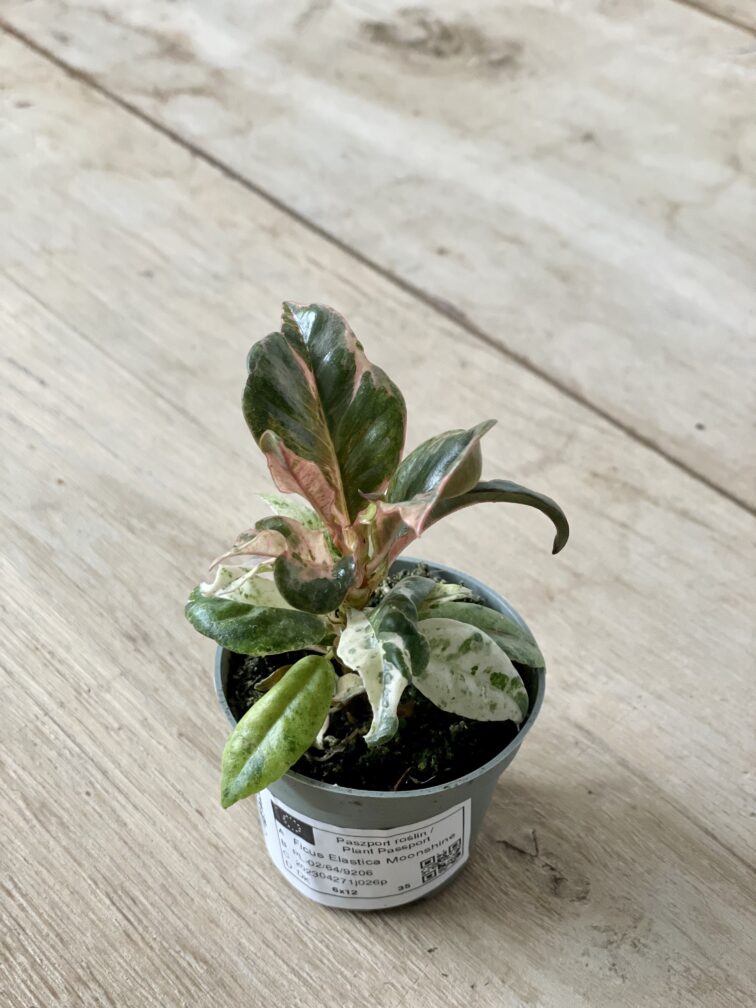Ficus elastica Moonshine, znany również jako Ficus Shivereana, to kolekcjonerska perełka, idealna dla fanów fikusów i nie tylko. Wyróżniają go wielobarwne liście, na których możemy spotkać zarówno różne odcienie zieleni, jak i pomarańcz oraz róż. Każdy nowy liść jest zaskoczeniem, a same nerwy też mogą mieć różową barwę. Mimo swoich wyjątkowych walorów estetycznych, nie jest trudniejszy w uprawie od innych fikusów sprężystych.