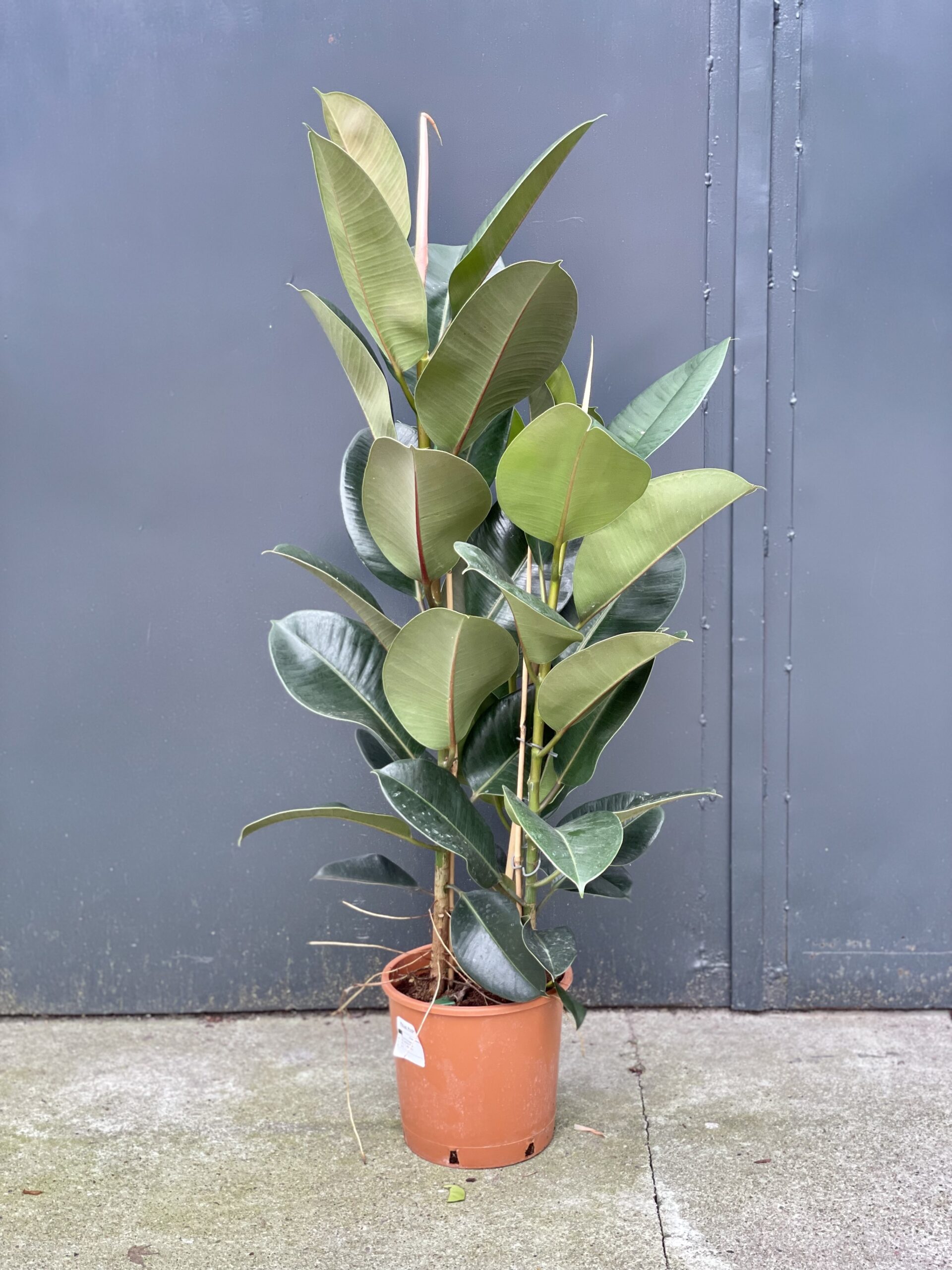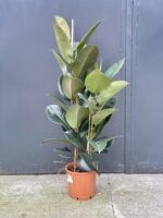 Widoczna na zdjęciu roślina: Ficus elastica Robusta ma wysokość około 120 cm. Jej doniczka ma 24 cm średnicy oraz 22 cm wysokości.