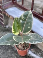 Malownicza odmiana Fikusa. Już przez samą kolorystykę może awansować do miana idealnej ozdoby wnętrza. Ciemną zieleń przełamują białe, nieregularne marginesy, a przez środek liścia biegnie wyrazisty czerwony nerw. Rośnie wolno, ale niezawodnie. Jest niekłopotliwy w obsłudze, choć jak wszystkie fikusy może nerwowo zareagować na zmianę otoczenia i zrzucić kilka liści.