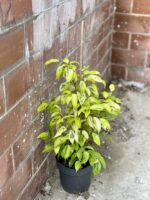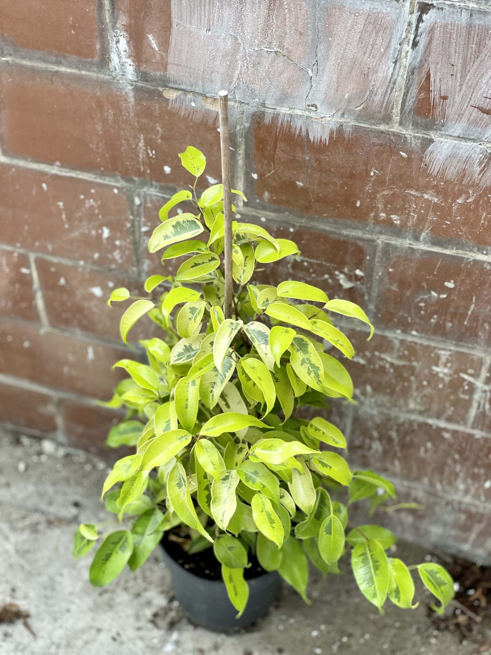 Ficus Golden Monique jest odmianą fikusa benjamina. To bardzo ozdobne i smukłe drzewko, gęsto pokryte urokliwymi listkami, które wyróżniają się falistymi brzegami i złocistym kolorem.
