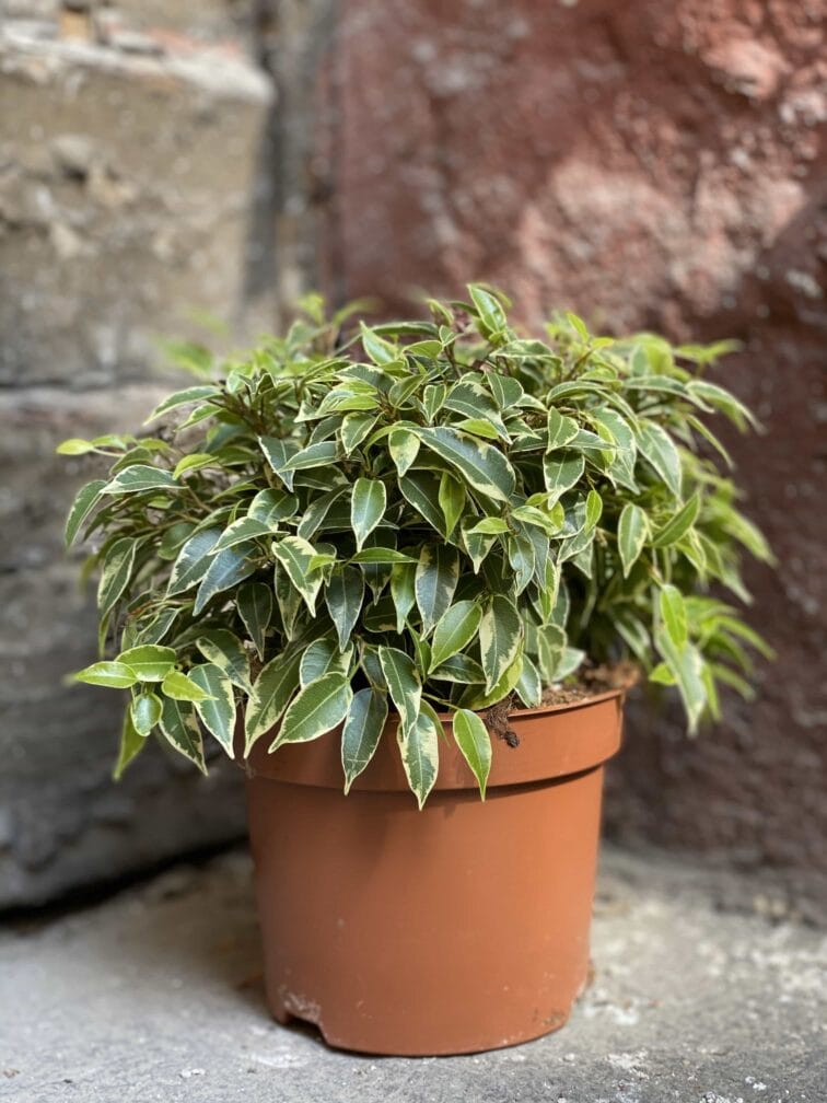 Pielęgnacja: Podlewamy gdy wierzchnia warstwa podłoża przyschnie. Generalnie utrzymujemy lekko wilgotne podłoże i uważamy na przelanie, które może doprowadzić do powstawania brązowych plamek na liściach lub do ich opadania. Od wiosny do jesieni warto zasilić raz lub dwa w miesiącu nawozem dla roślin doniczkowych. Fikus dobrze odnajdzie się w podłożu uniwersalnym, ale warto je dodatkowo rozluźnić np. chipsami kokosowymi i/lub perlitem.