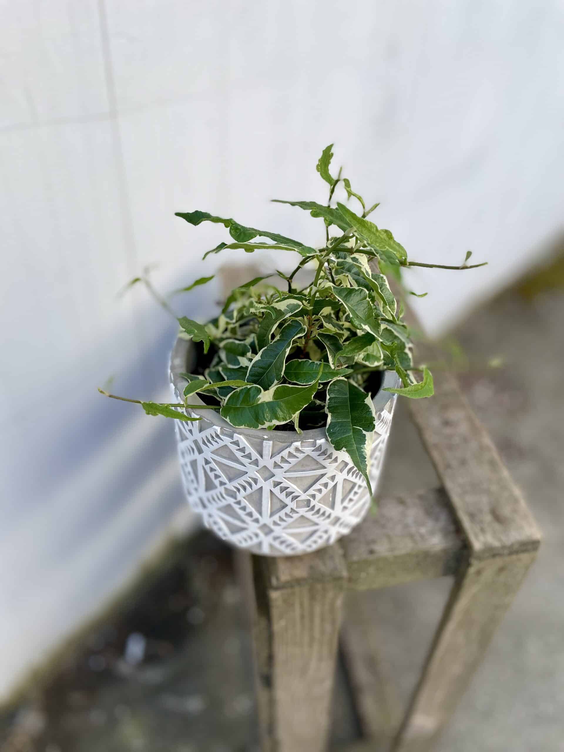 Pielęgnacja: Podlewamy, gdy wierzchnia warstwa podłoża przyschnie. Generalnie utrzymujemy lekko wilgotne podłoże i uważamy na przelanie, które może doprowadzić do powstawania brązowych plamek na liściach lub do ich opadania. Od wiosny do jesieni warto zasilić raz lub dwa w miesiącu nawozem dla roślin doniczkowych. Szczęśliwy w luźnym, przepuszczalnym podłożu z dodatkiem perlitu i/lub chipsów kokosowych.