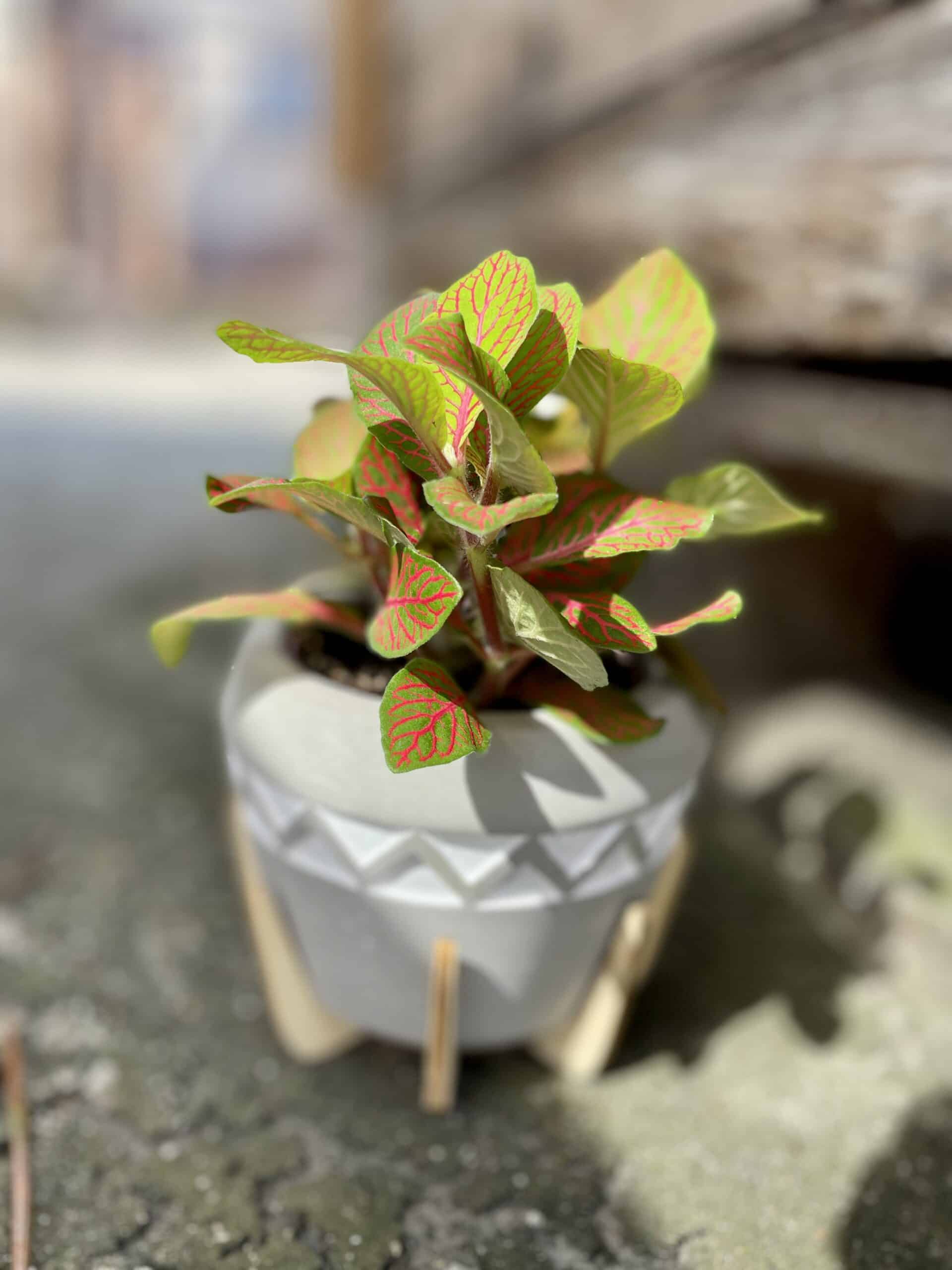 Fittonia albivenis Skeleton ma listki pokryte gęstą siatką czerwonych żyłek, pięknie odcinających się od zielonej blaszki. Gęsty, dorodny pokrój i żywa, intensywna kolorystyka cieszą oczy. Obejrzyjcie też koniecznie równie piękne kuzynki tej fittoni z naszej kolekcji.