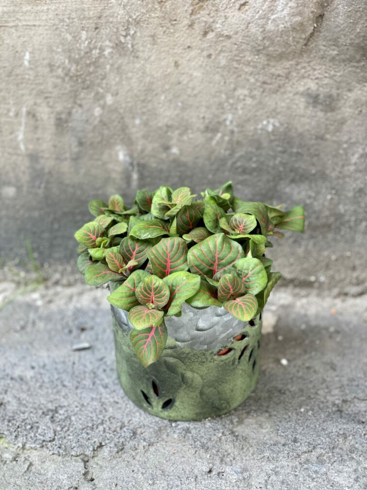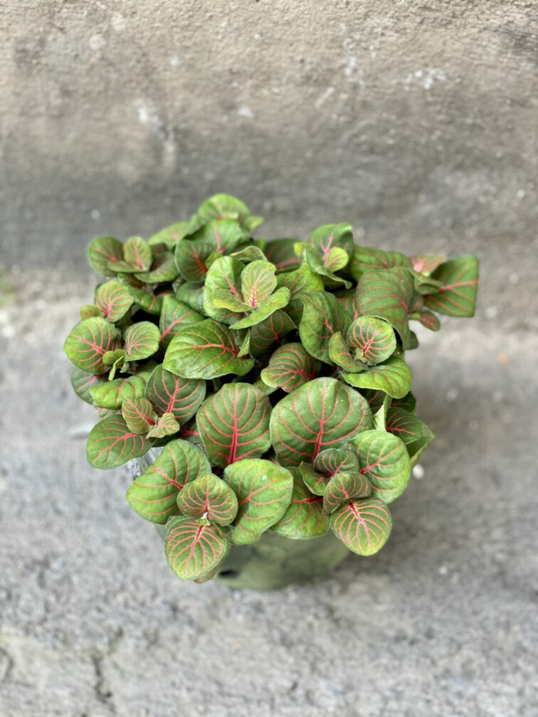 Przepiękna odmiana Fittoni o błyszczących listkach ozdobionych wyrazistym, czerwonym unerwieniem, symetrycznie rozkrzewiającym się na powierzchni blaszki