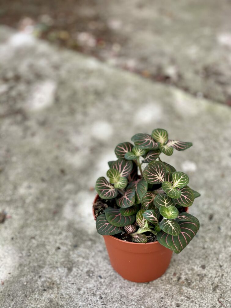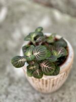 Przepiękna odmiana Fittoni o błyszczących listkach ozdobionych wyrazistym, czerwonym unerwieniem, symetrycznie rozkrzewiającym się na powierzchni blaszki