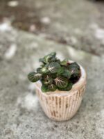 Widoczna na zdjęciu roślina: Fittonia Fortissimo Bubble Red ma wysokość około 12 cm. Jej doniczka ma 8 cm średnicy oraz 7 cm wysokości.