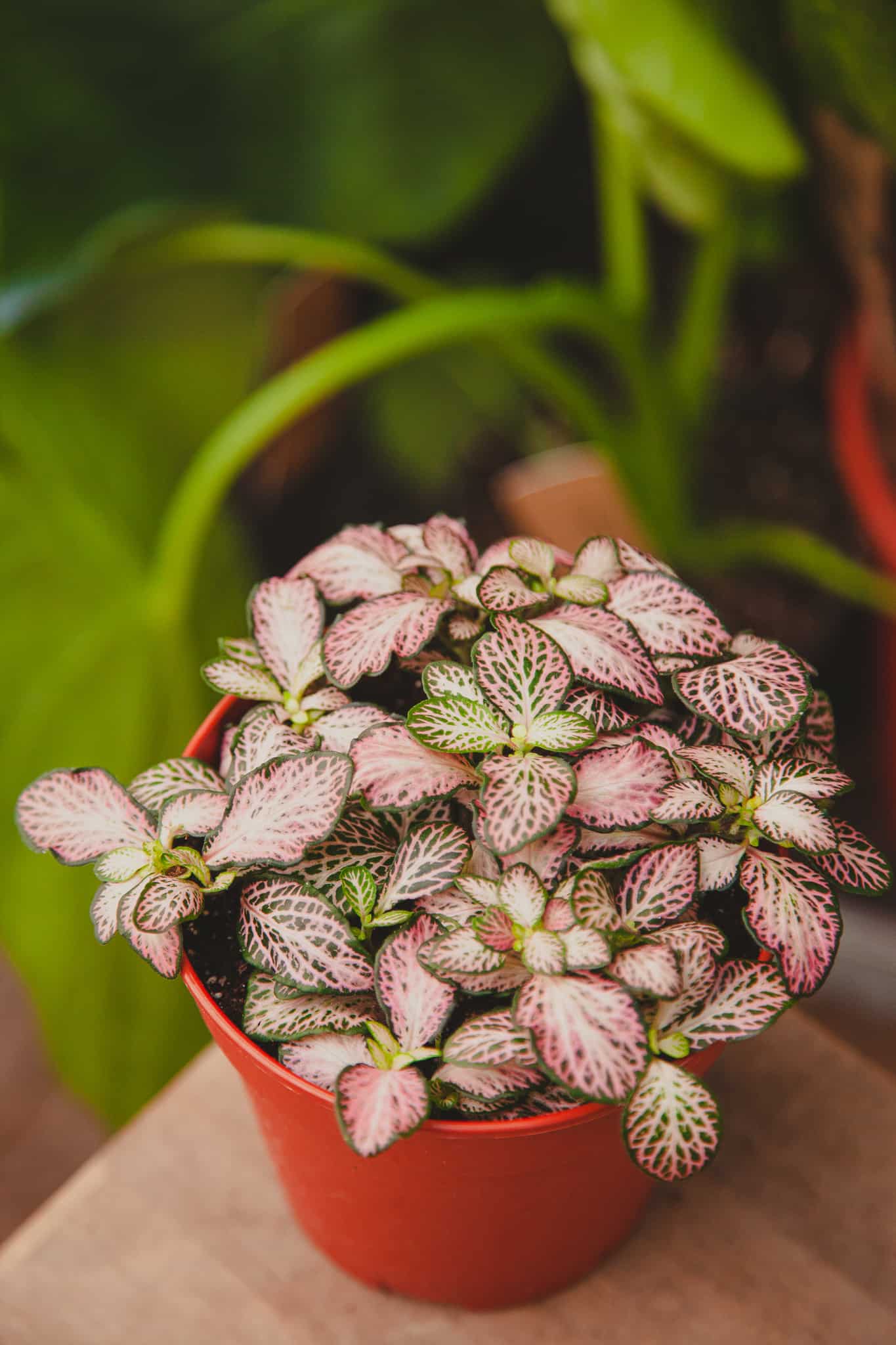 Można się kłócić czy ten piękny rysunek na liściu faktycznie przypomina tygrysie pręgi. Ale połączenie intensywnie malinowego koloru z ciemną zielenią jest dla nas bezapelacyjnym strzałem w dziesiątkę. Kształt liści jest również bardzo oryginalny i inny od zwyczajowo opływowych listków, jakie spotykamy u innych odmian fittoni.