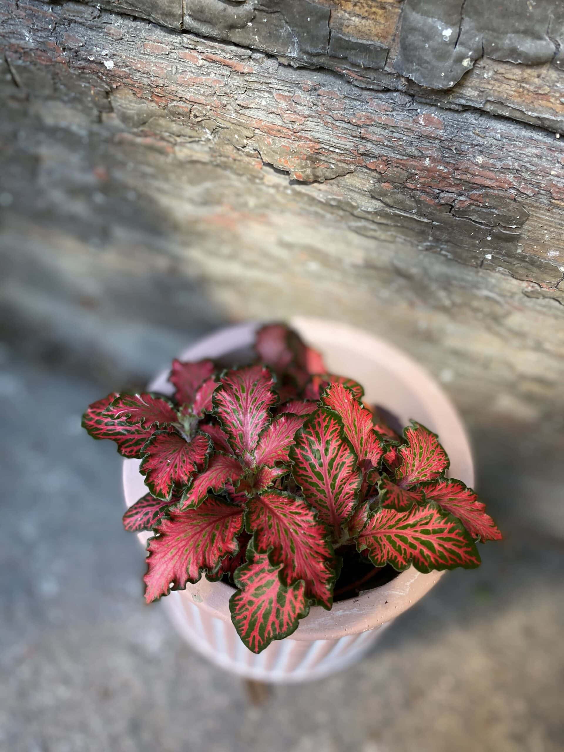 Można się kłócić czy ten piękny rysunek na liściu faktycznie przypomina tygrysie pręgi. Ale połączenie intensywnie malinowego koloru z ciemną zielenią jest dla nas bezapelacyjnym strzałem w dziesiątkę. Kształt liści jest również bardzo oryginalny i inny od zwyczajowo opływowych listków, jakie spotykamy u innych odmian fittoni.
