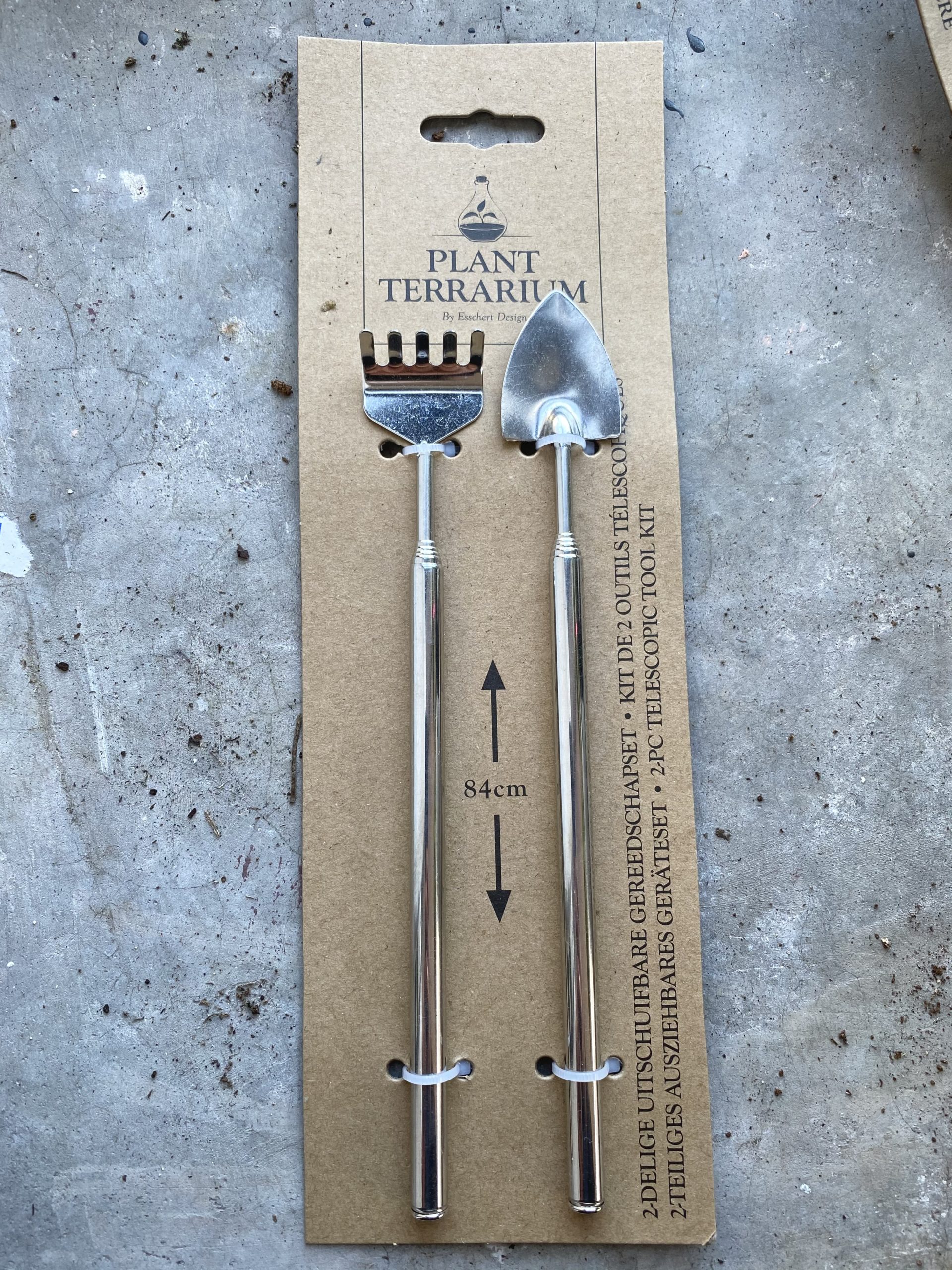 Zestaw niewielkich rozmiarów narzędzi na długim trzonku, który pozwoli na wykonanie precyzyjnych prac pielęgnacyjnych wewnątrz słojów i terrariów nawet o wąskich otworach. Pozwolą sięgnąć tam, gdzie dłoń się nie zmieści
