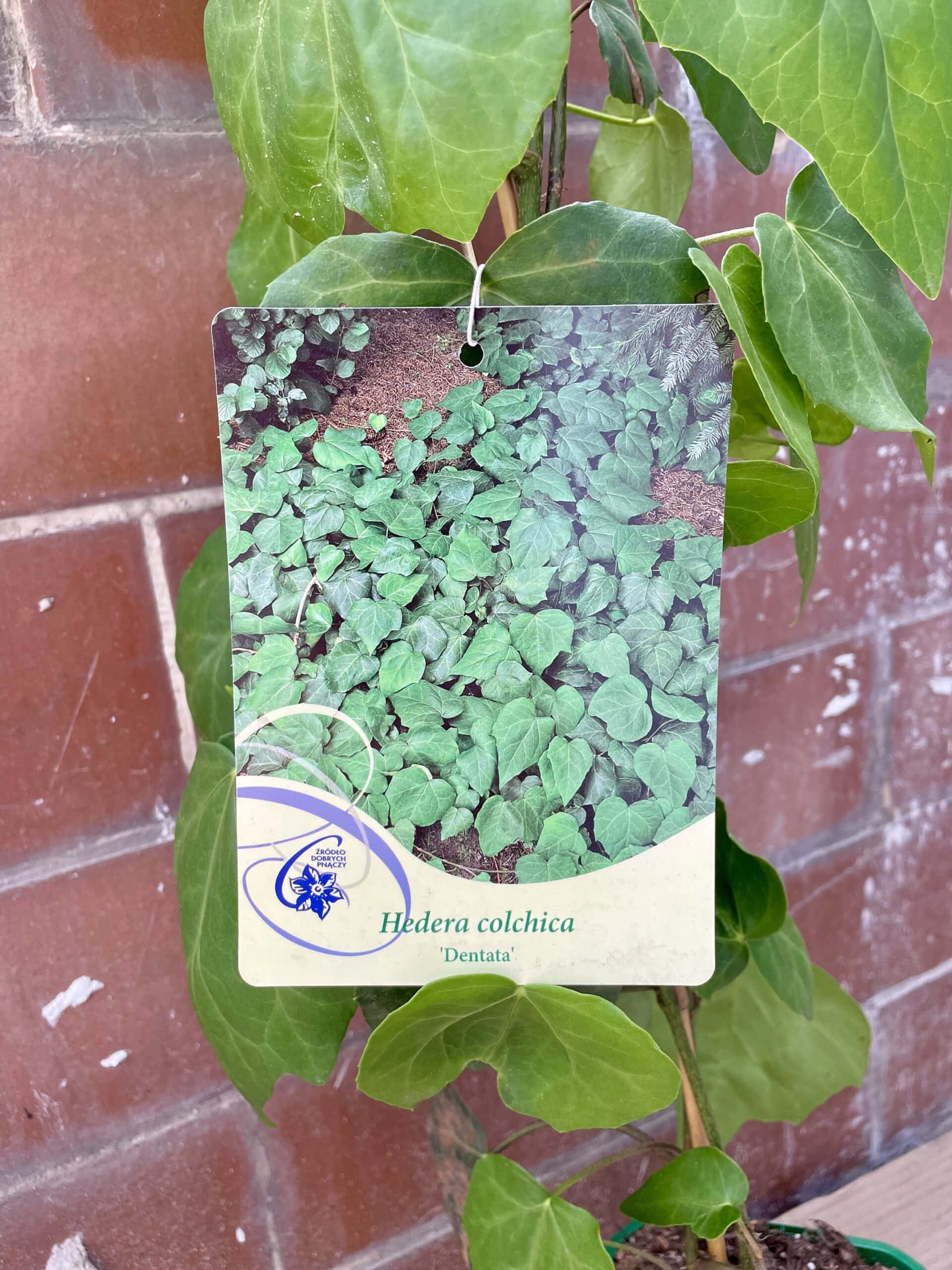Widoczna na zdjęciu roślina: Hedera colchica Dentata ma wysokość około 60 cm. Jej doniczka ma 17 cm średnicy oraz 13 cm wysokości.