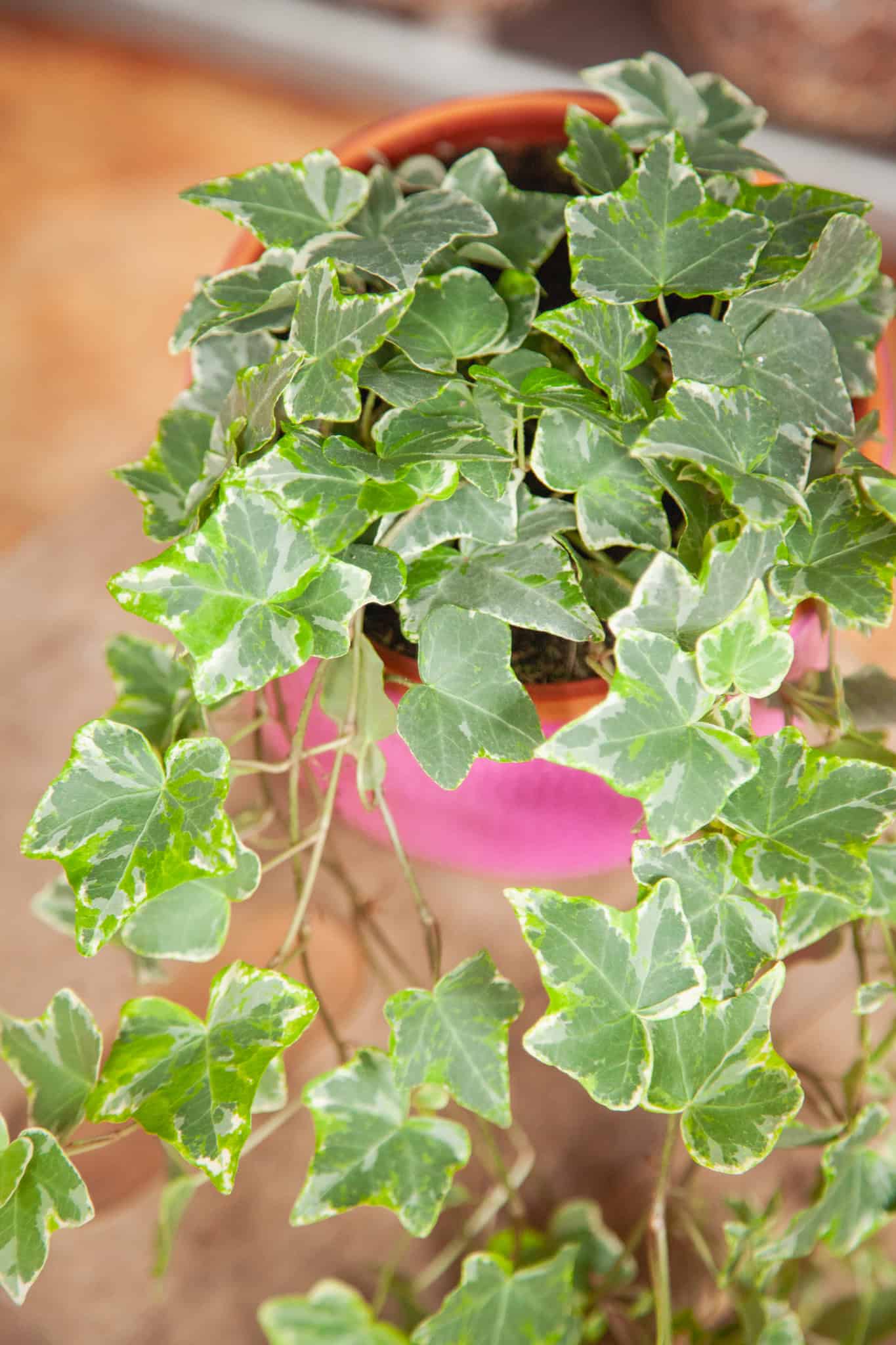 Widoczna na zdjęciu roślina: Hedera helix Mint Kolibri ma wysokość około 25 cm. Jej doniczka ma 13 cm średnicy oraz 13 cm wysokości.