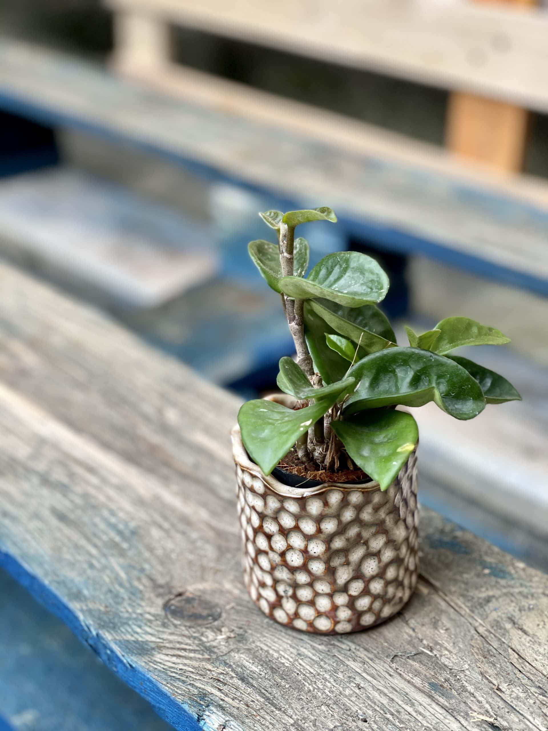 Zjawiskowa, soczyście zielona hoya stworzona by spływać z najwyższej półki albo stworzyć duet z makramą. W momencie kwitnienia wypuszcza białe, czarujące kwiaty o słodkawym zapachu