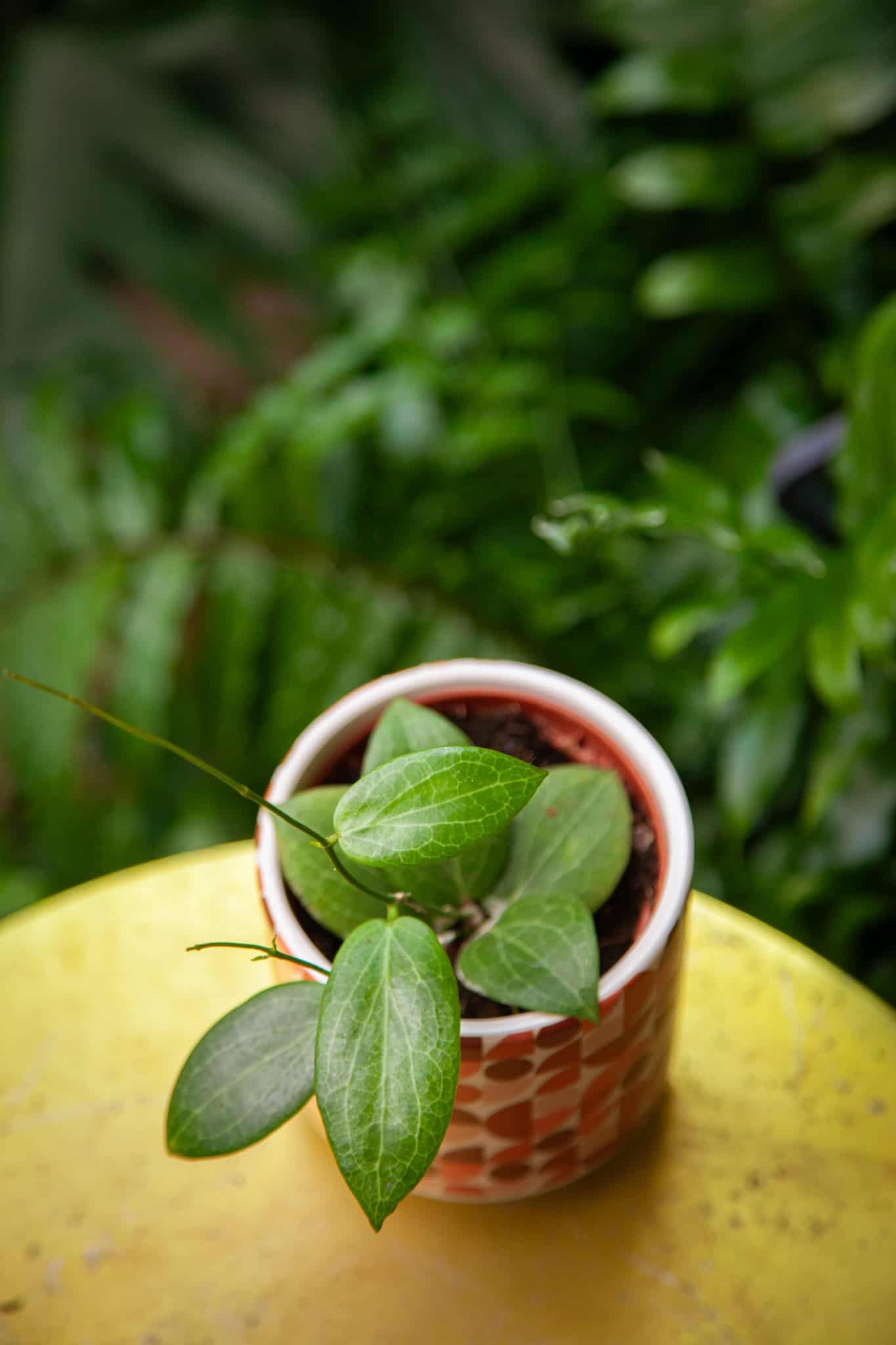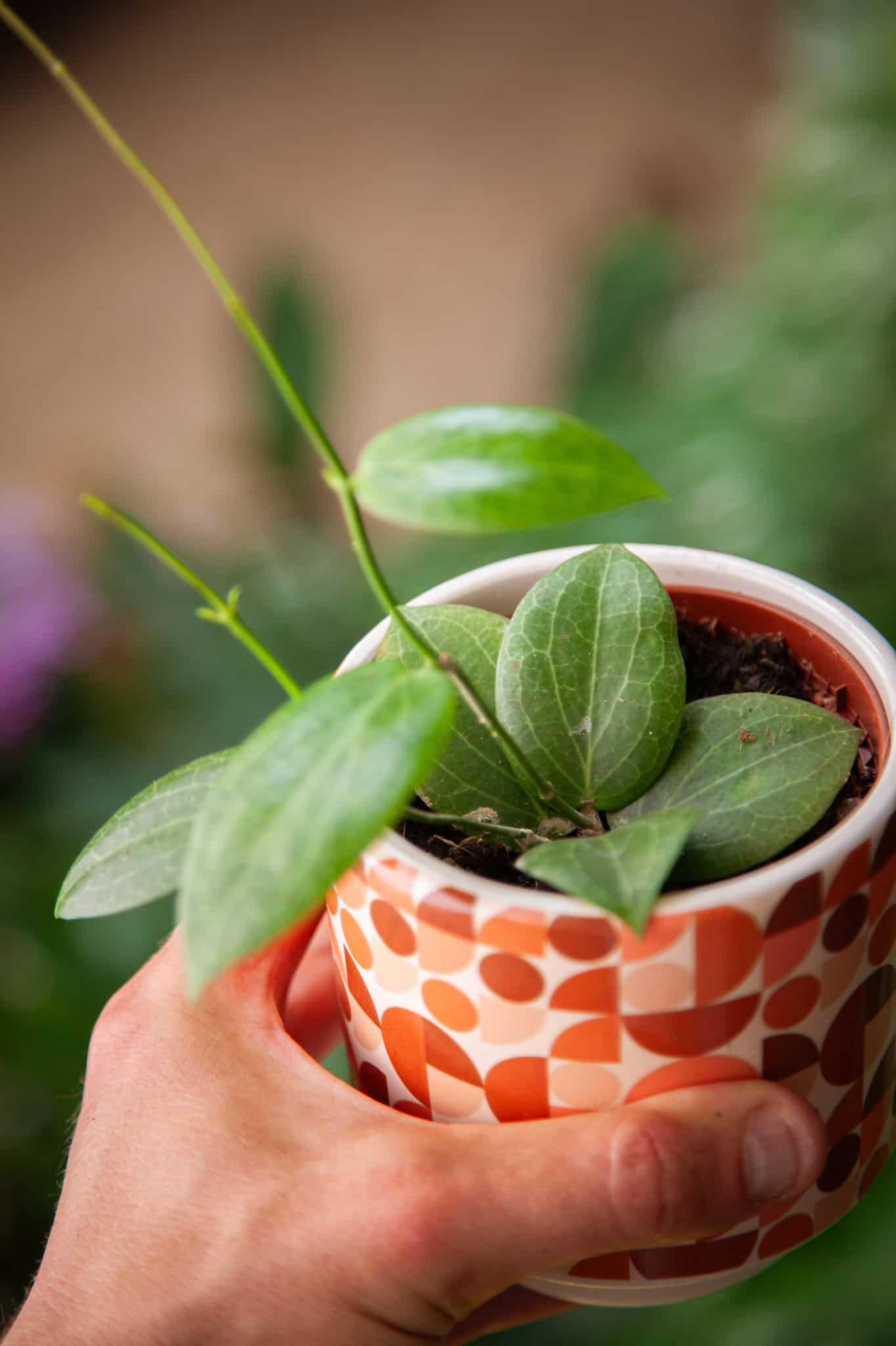Pielęgnacja: Utrzymuj podłoże lekko wilgotne; podlewaj, gdy wierzchnia warstwa ziemi przeschnie na 2–3 cm. Hoya preferuje umiarkowaną do wysokiej wilgotności powietrza. Można ją prowadzić na podporach lub pozostawić jako roślinę zwisającą. Nawozimy co 4–6 tygodni nawozem do roślin kwitnących w okresie wegetacji.