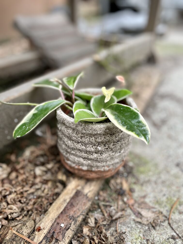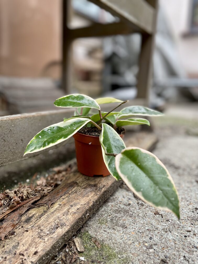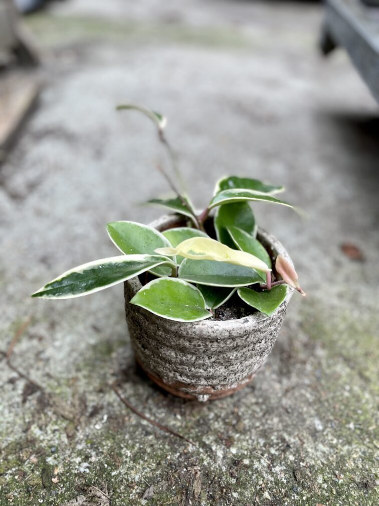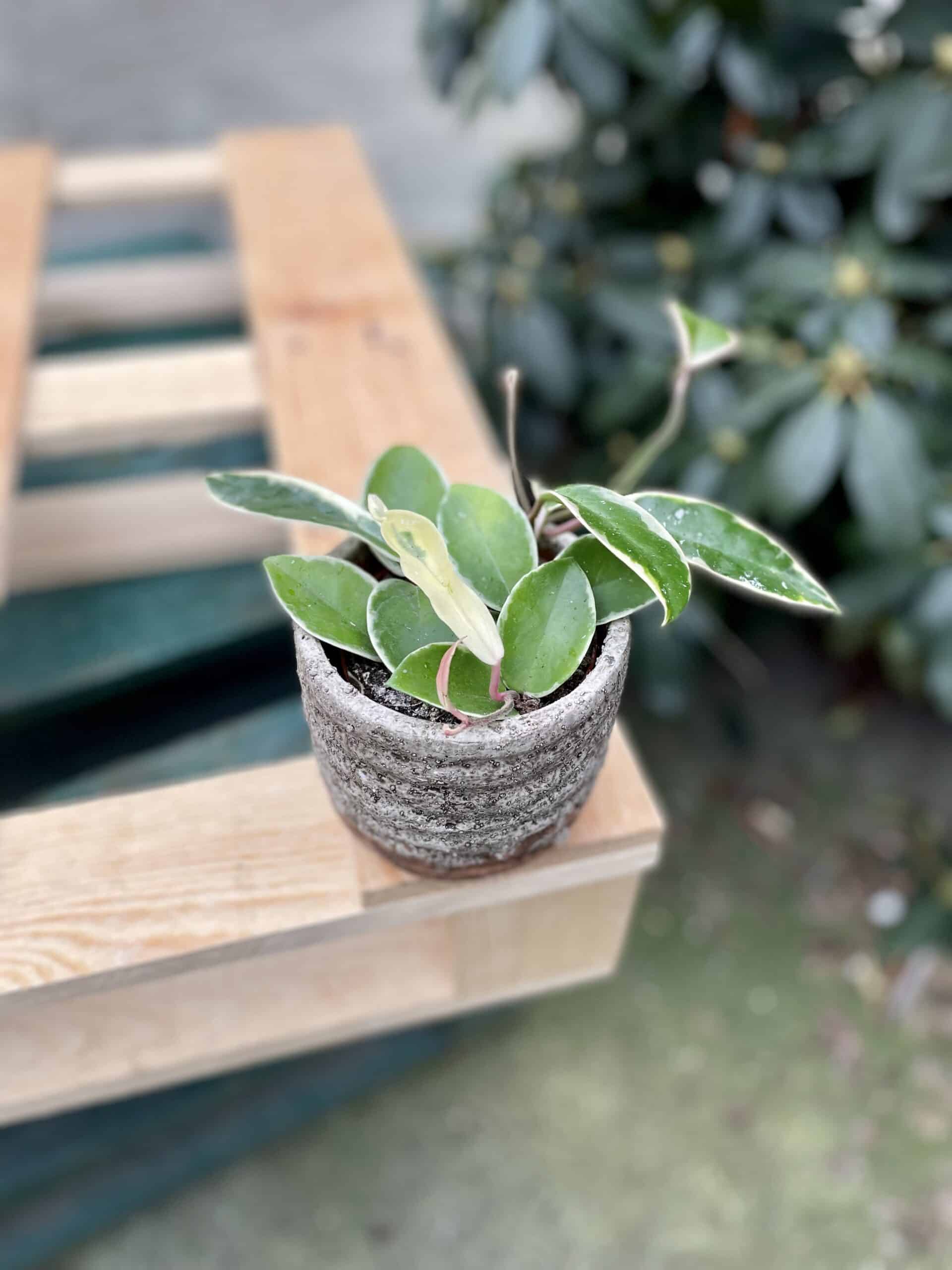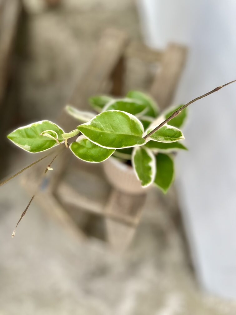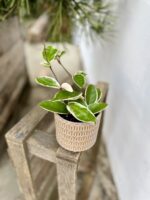 Hoya zwana jest też Woskownicą, ze względu na słodki, lepki nektar jaki wydzielają jej kwiaty. Krimson Queen to magia drobnych listków z kremową obwódką. Pięknie prezentuje się w makramie lub na najwyższej półce, skąd może swobodnie „spływać”