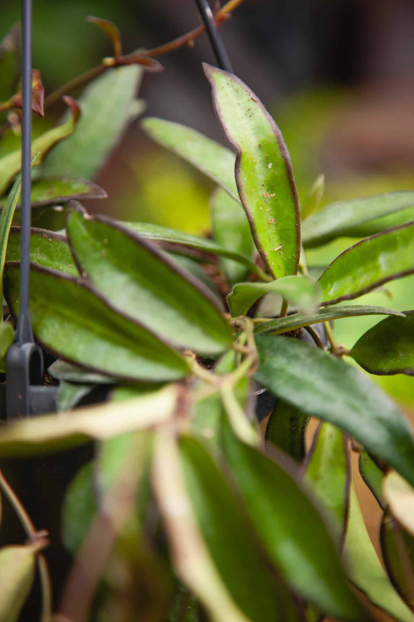 Na co trzeba uważać?: Najczęstszym problemem pielęgnacyjnym w uprawie hoi jest nadmierne podlewanie, które skutkuje marszczeniem się i żółknięciem liści, które stają się wiotkie i opadają. Bardzo uważamy więc z konewką! Hoja jest również podatna na ataki wełnowców, które szczególnie lubią atakować nasadę liścia i ogonka liściowego, należy więc regularnie ją przeglądać pod kątem obecności tego szkodnika.