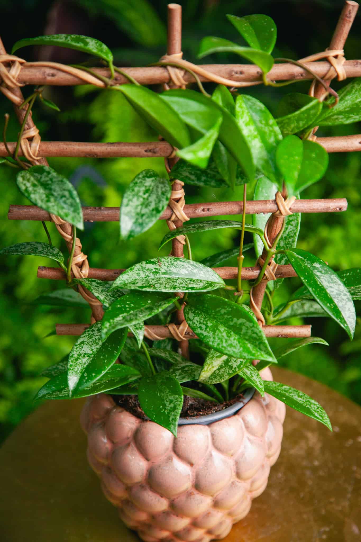 Hoya Silver Spot to piękna hoya o mięsistych, błyszczących liściach, które są bogato zdobione srebrzystymi plamkami. Idealna do makramy lub na wysoką półkę.
