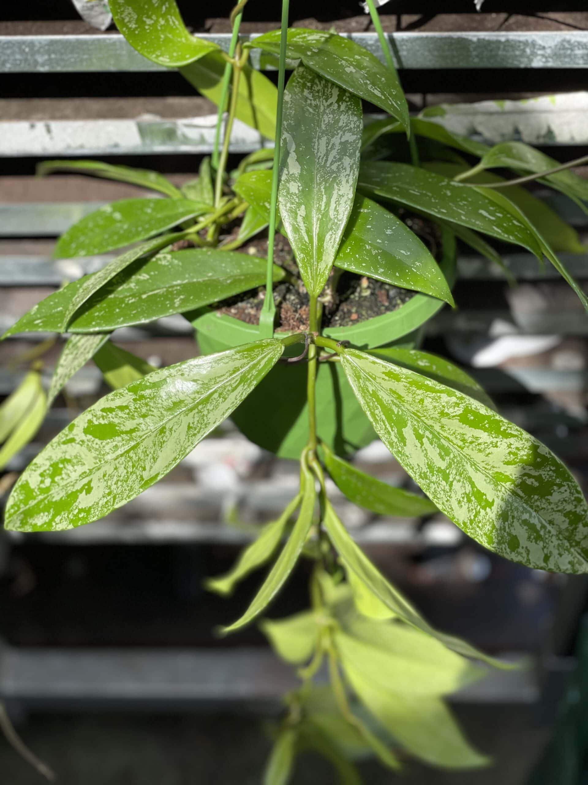 Pielęgnacja: Hoya jest posiadaczką sukulentnych liści, w których gromadzi wodę. Dlatego pozwalamy przeschnąć glebie pomiędzy podlewaniami i podlewamy raczej oszczędnie, szczególnie zimą. Ziemia powinna być dobrze przepuszczalna, nada się np. mieszanka do kaktusów i sukulentów lub ta dedykowana epifitom. Latem regularnie zasilamy nawozem dla roślin kwitnących.