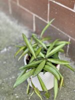 Ta piękna i dość rzadka odmiana Hoyi oszałamiająco wygląda w makramie lub spływając z górnej półki. Liście mają dekoracyjną, ciemną obwódkę, a przy odpowiedniej ilości światła dostaną też delikatnych czerwonych przebarwień, które dodatkowo podkręcą wygląd roślinki