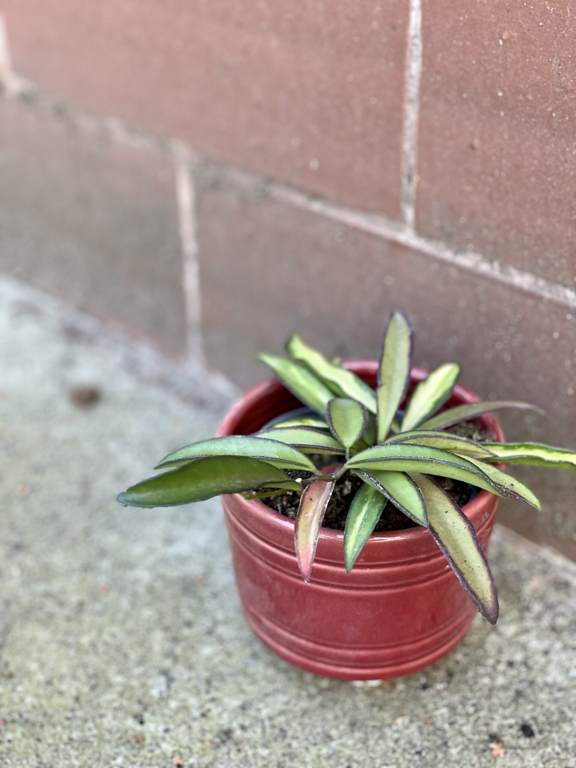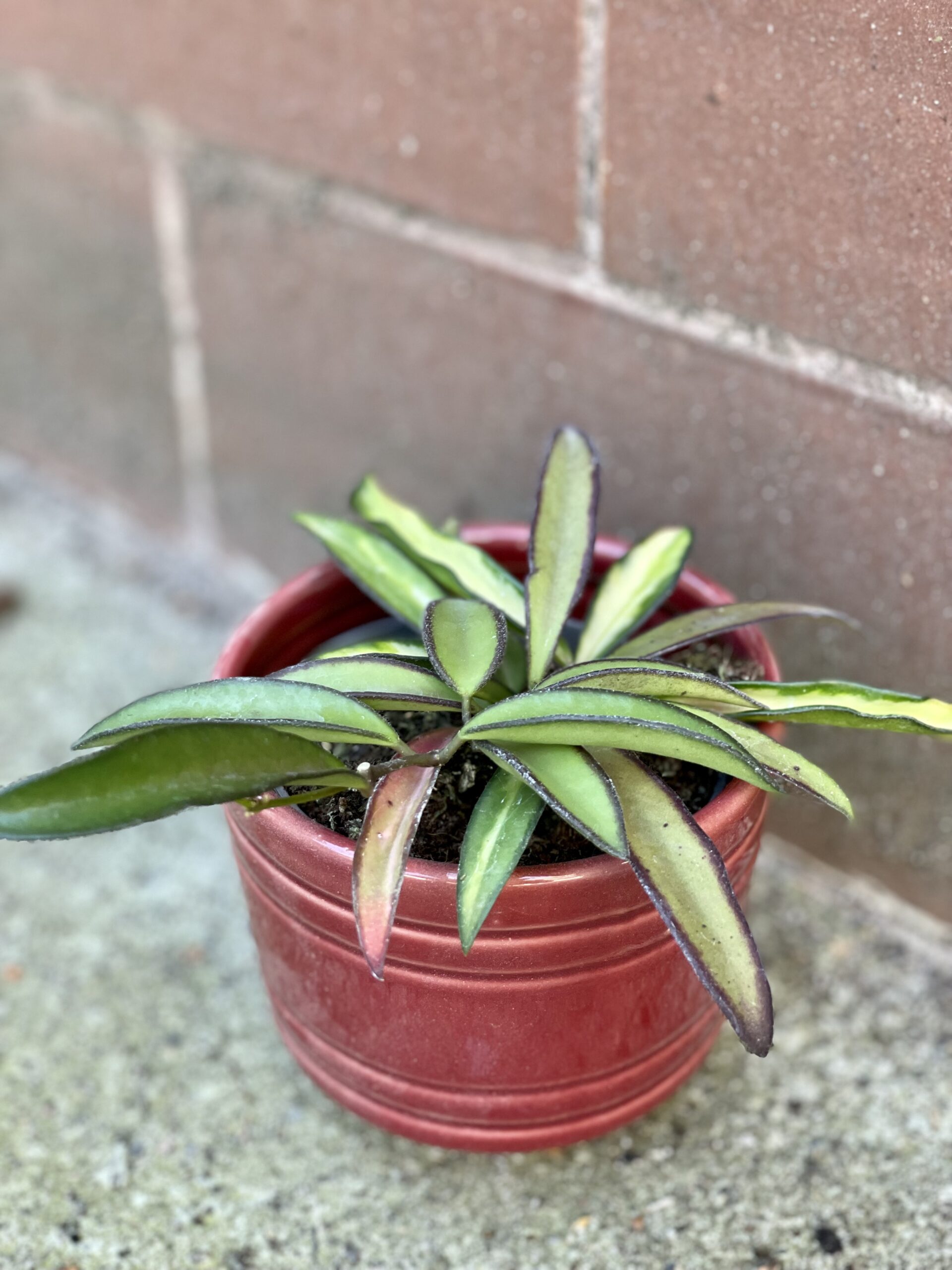 Hoya wayetii (kentiana) variegata to kolekcjonerska odmiana hoi, o wyjątkowych wydłużonych liściach, z ciemniejszym obramowaniem. Nowe liście tej woskownicy mają uroczą różową barwę, która z czasem przechodzi w bardziej kremowy odcień. Jak wszystkie woskownice – za dobrą opiekę odwdzięcza się pięknymi kwiatami.