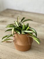 Widoczna na zdjęciu roślina: Hoya wayetii (kentiana) variegata ma wysokość około 20 cm. Jej doniczka ma 8 cm średnicy oraz 7 cm wysokości.