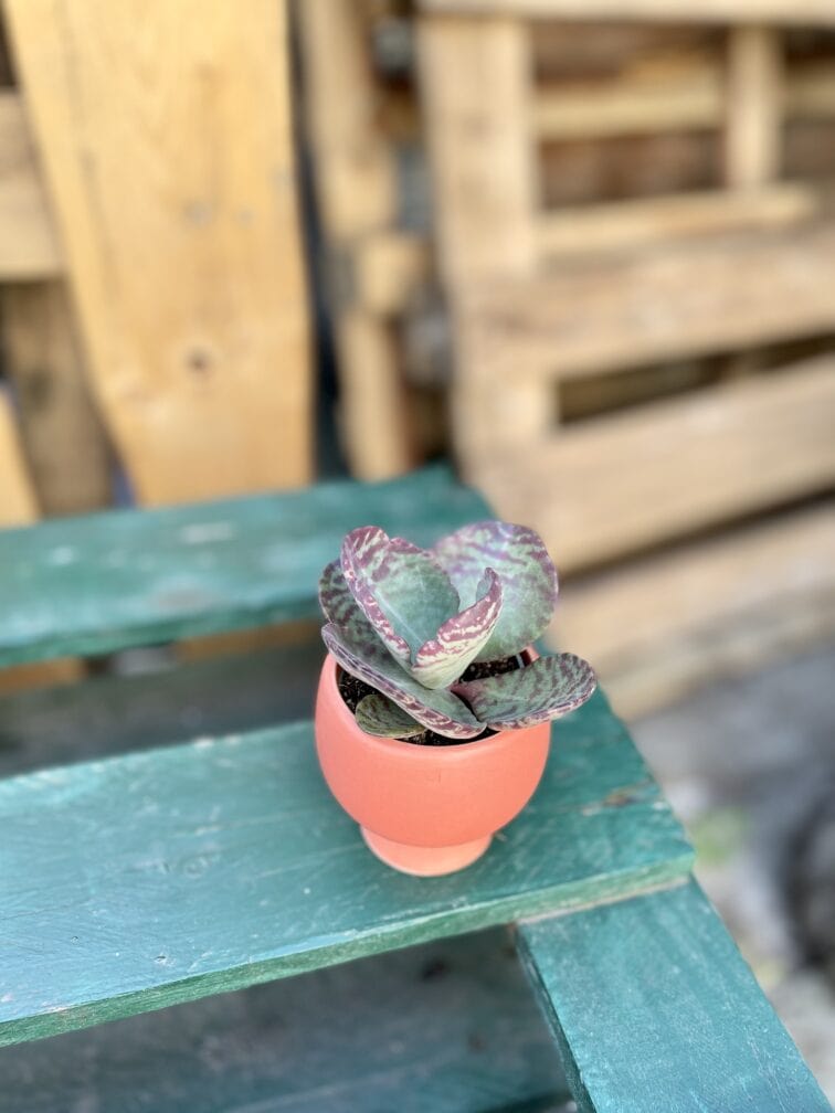 Kalanchoe humilis Desert Surprise to urodziwy sukulent o mięsistych liściach, na których malują się różowawe, tygrysie paski. Jest rośliną doniczkową łatwą w uprawie pod warunkiem, że damy jej sporo słońca i nie będziemy jej nadmiernie podlewać.