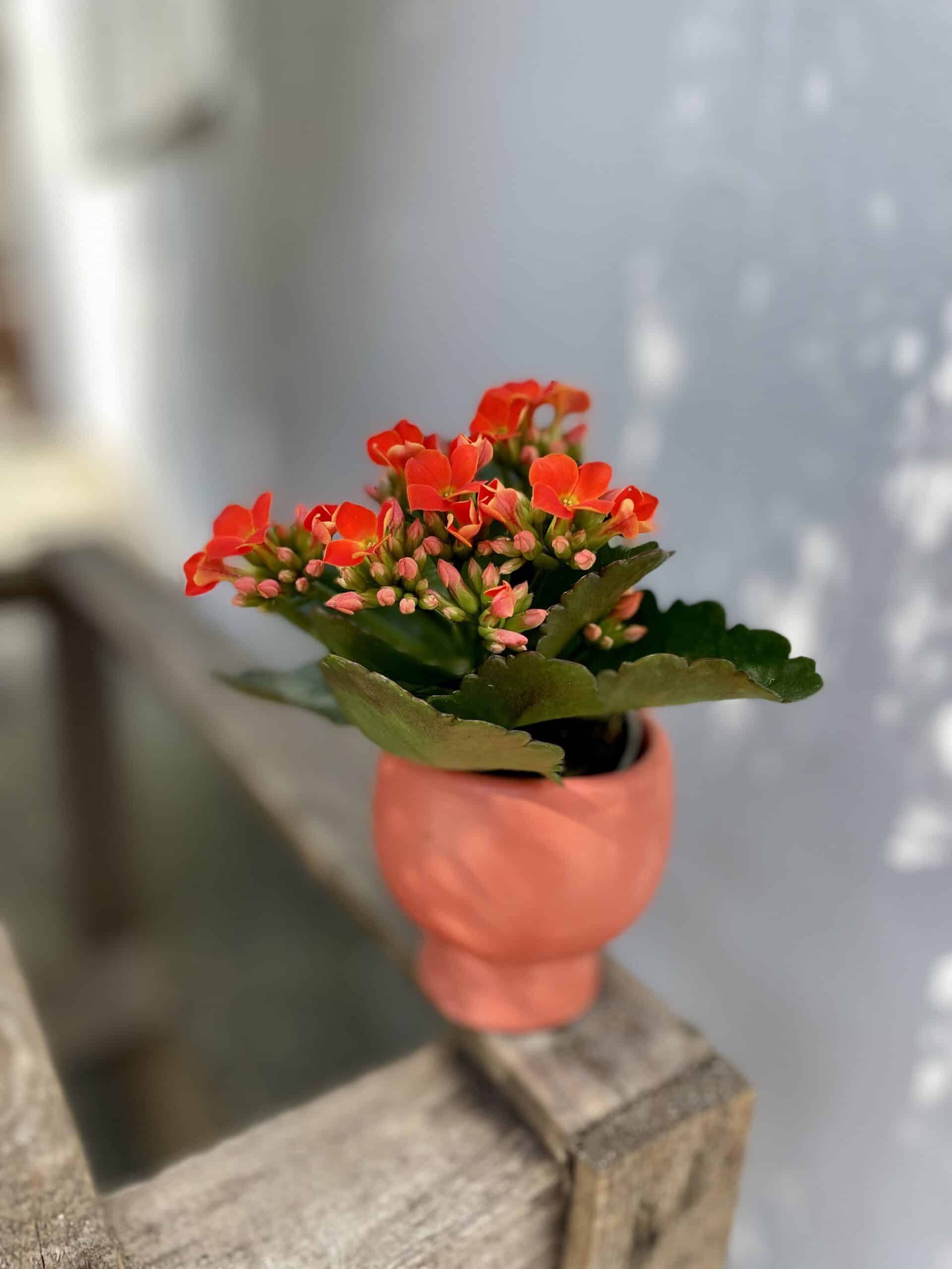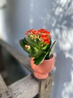 Kalanchoe o efektownych, pomarańczowych kwiatach zebranych w baldachogrona. Dorasta do max. 30-40 cm wysokości, jest to więc kompaktowa roślinka na biurko czy małą półkę.