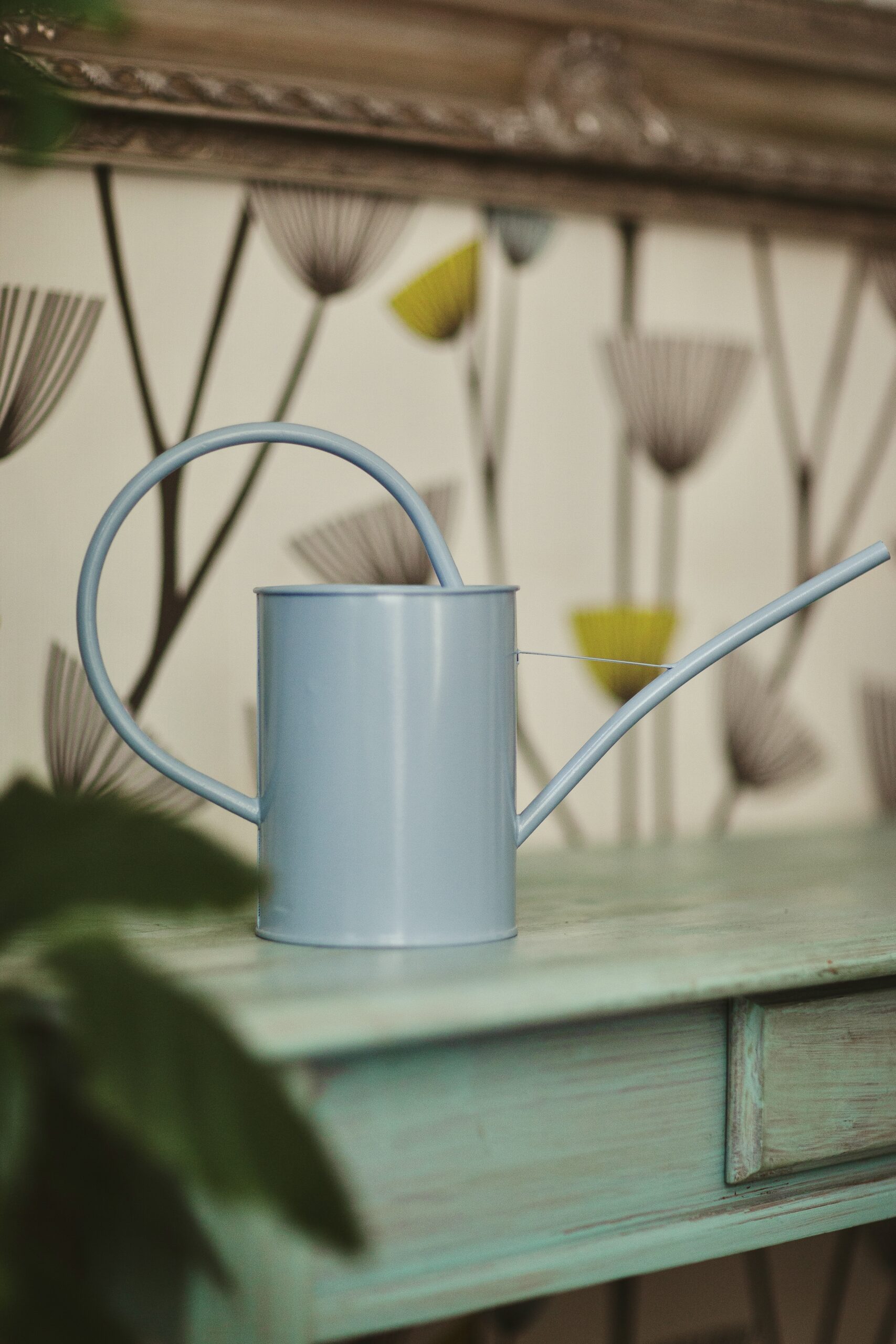Metalowa konewka w kolorze pastelowego błękitu. Optymalna pojemność (około 1,6l), smukła szyjka i spory otwór na górze pozwalają na precyzyjne podlewanie roślin domowych i ogrodowych. Klasyczny design umożliwia potraktowanie tej konewki również jako ozdobę roślinnego zakątka.