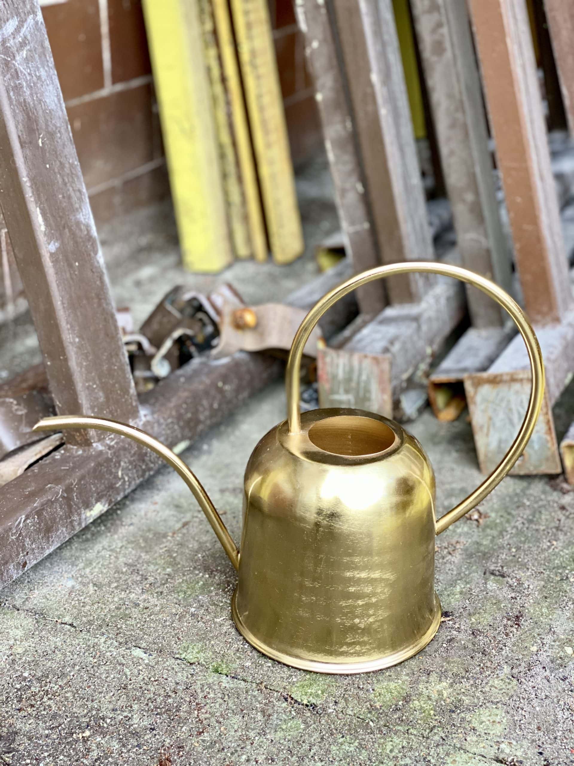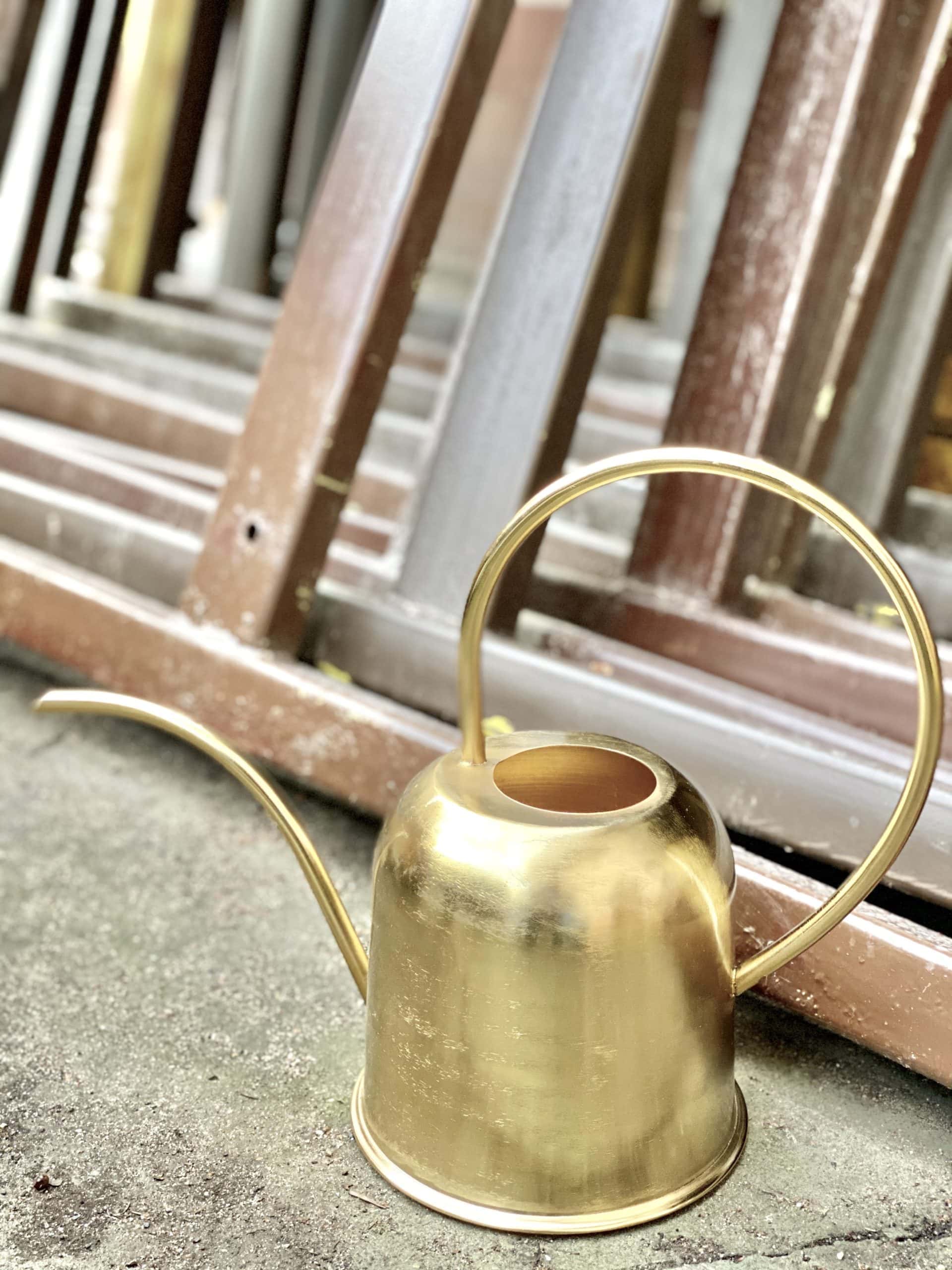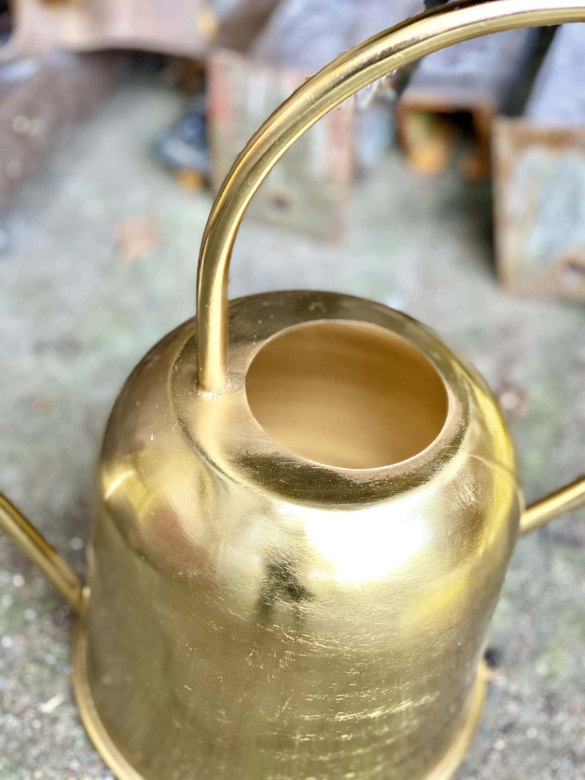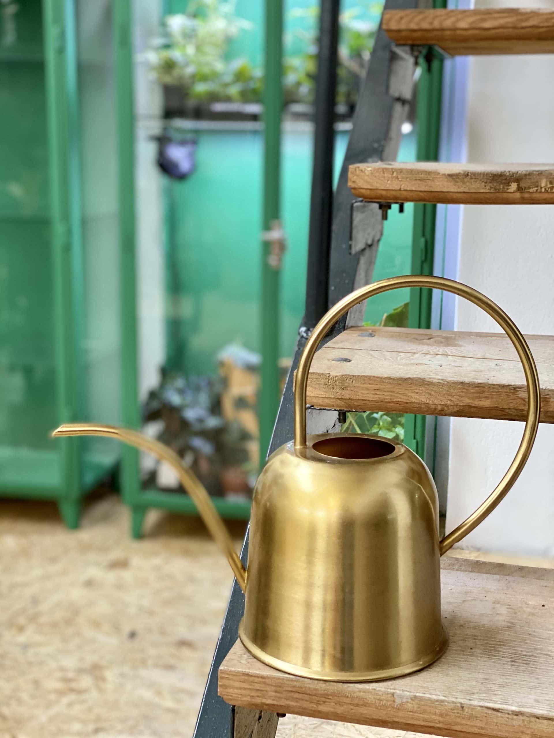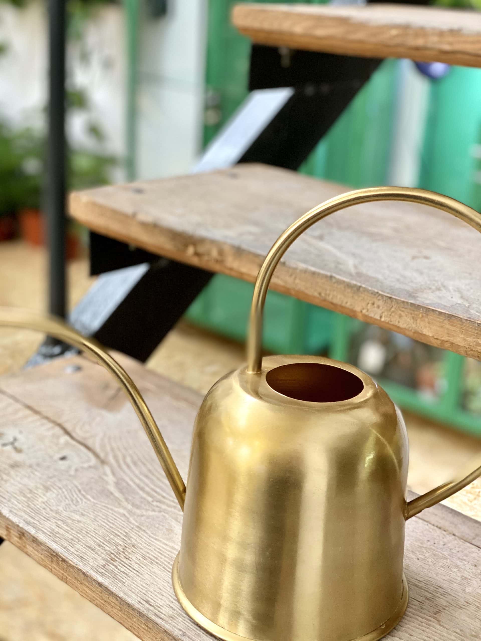 Kultowa metalowa konewka w wyprofilowanym cienkim dziubkiem w kolorze starego złota firmy Bloomingville