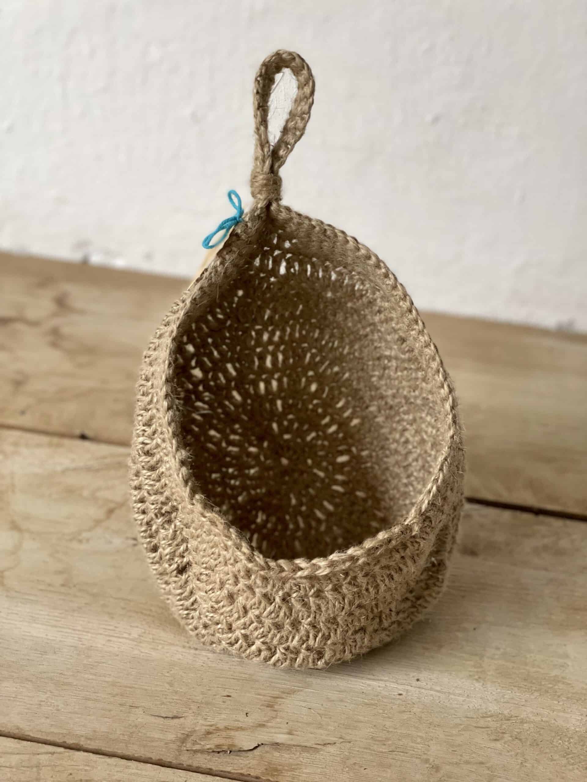 Widoczna na zdjęciu Koszyk Jutowy Wiszący ma 20 cm średnicy oraz 33 cm wysokości.