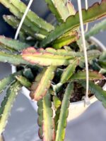 Pielęgnacja: Podłoże powinno lekkie i przepuszczalne z domieszką chipsów kokosowych i kory, np. podłoże dedykowane epifitom. Ewentualnie podłoże do kaktusów i sukulentów, ale najlepiej jeszcze dodatkowo czymś je rozluźnić. Podlewamy całą powierzchnię podłoża dając mu przeschnąć między podlewaniami.