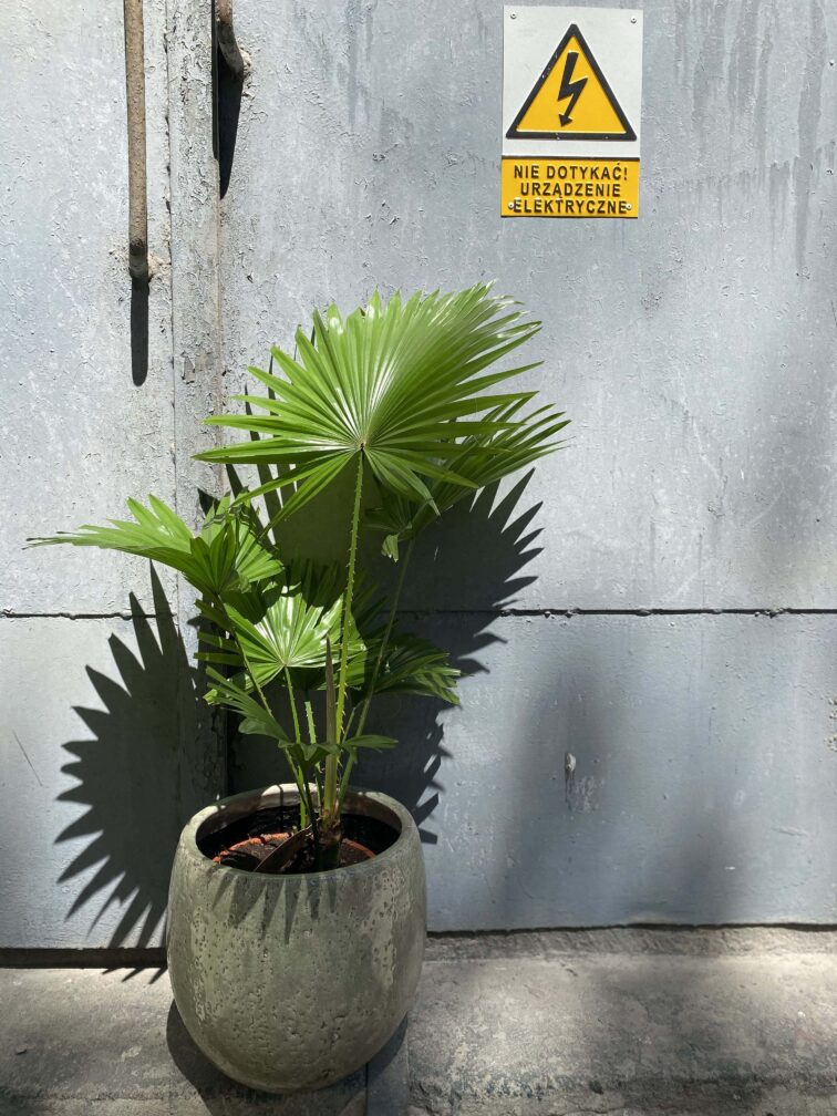 Palma o wachlarzowatych, owalnych, bardzo dekoracyjnych liściach. W Azji południowo-wschodniej, skąd pochodzi, dorasta nawet do 20 metrów. W warunkach mieszkaniowych również może osiągnąć całkiem duży rozmiar, choć rośnie wolno.